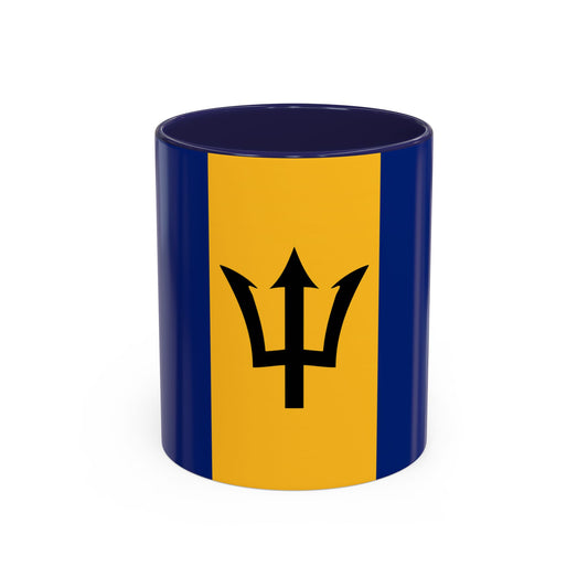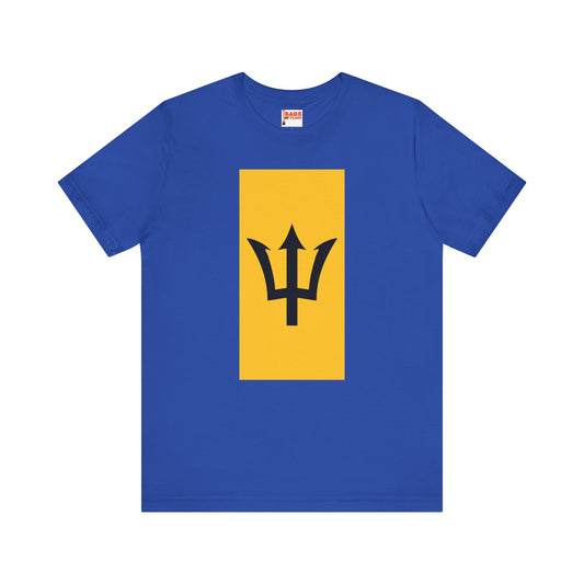 The Barbados flag features a striking design with three vertical panels: two ultramarine bands on the outer edges and a golden-yellow strip down the middle. A vital element of this flag is the black trident head positioned in the center of the gold band. Notably missing its staff, the trident adds a distinct character to the flag, embodying the nation's break from colonial rule and sovereignty. The choice of colors—ultramarine and gold—complements the flag's symbolism by representing the island's natural beauty, from its clear blue skies and surrounding ocean to the sandy beaches that define its landscapes. Since its adoption, this flag has stood as a powerful emblem of Barbados's identity, heritage, and aspirations.