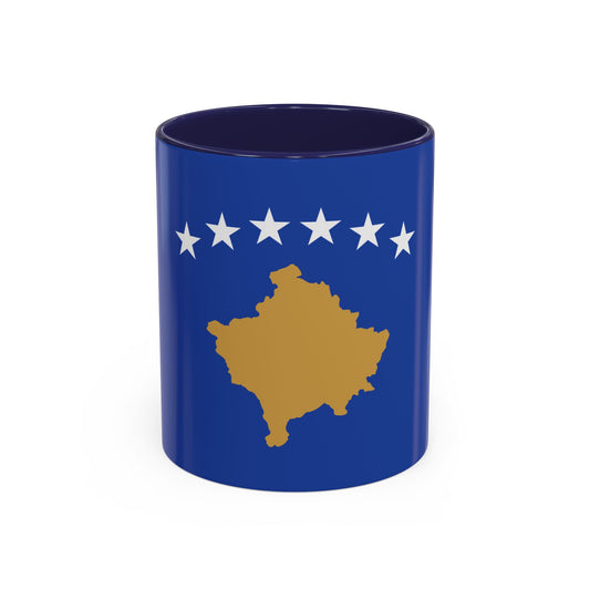 The national flag of Kosovo is characterized by its distinct and meaningful design, comprising a deep blue field that serves as the backdrop for its central features. At the heart of the flag lies a detailed gold outline of Kosovo's map, positioned squarely in the center. Arching above this golden silhouette, six white stars form a gentle arc, each star symbolizing the harmonious coexistence of Kosovo's main ethnic groups. This choice of colors - blue, gold, and white - is not merely aesthetic but also significant.