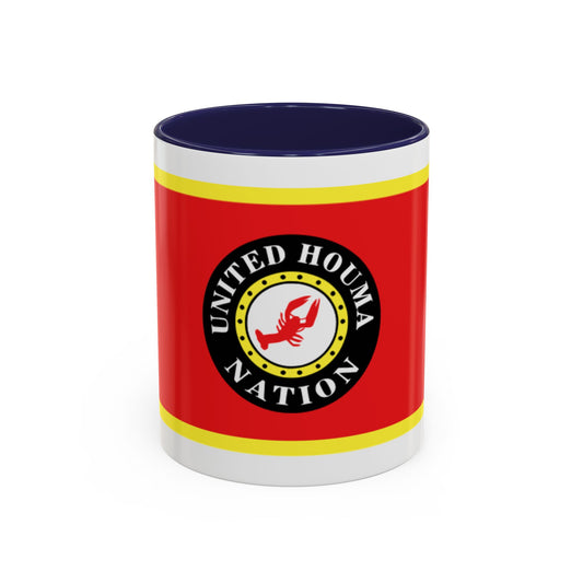 Encircling the crawfish are the words "United Houma Nation," emphasizing unity and identity. The flag's design elements collectively honor the tribe's history, cultural symbols, and enduring presence in the region.