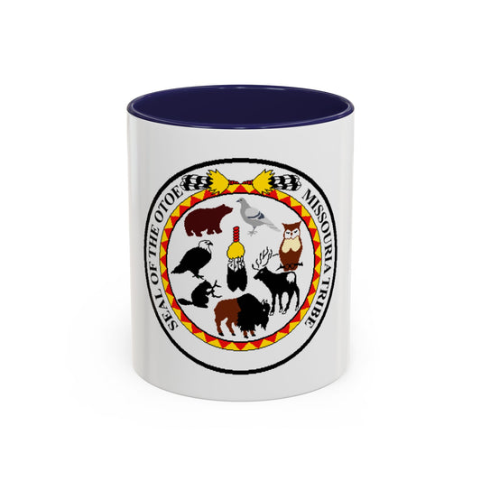 The Otoe–Missouria Tribe's flag features their official tribal seal on a solid white background. The flag serves as a symbol of the tribe's identity and sovereignty. It is displayed during official events, ceremonies, and within tribal facilities.