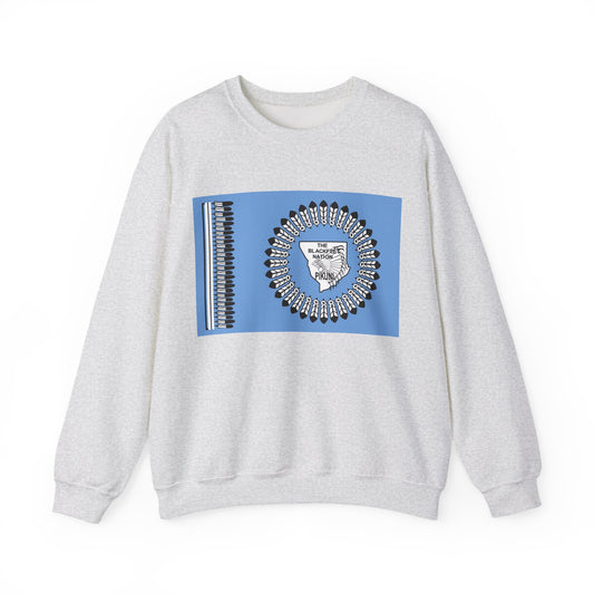 The official flag of the Blackfeet Nation incorporates visual elements that express sovereignty, sacred geography, and cultural endurance. At its center is the outline of the Blackfeet Reservation, anchoring the tribe to their homeland. Inside that shape is a war bonnet—a revered cultural symbol of honor, leadership, and warrior tradition.