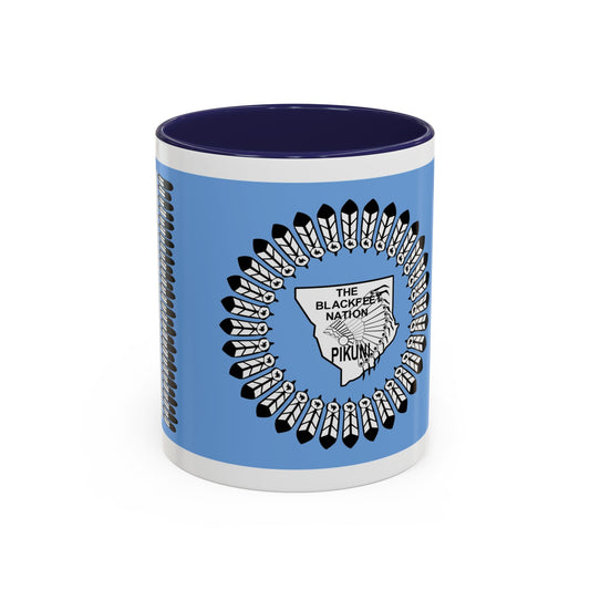 The flag’s blue field is often interpreted as a representation of the sky, spiritual protection, and the Piegan connection to the natural world. Every visual detail on the flag reflects sacred values, ancestral lineage, and the continued presence of the Blackfeet as a sovereign and self-determined people.