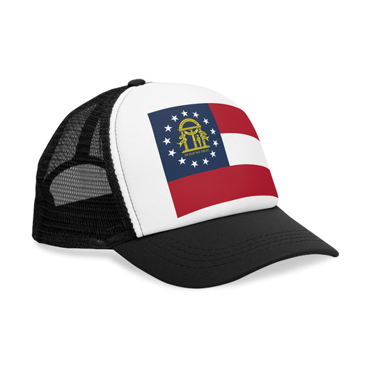At the heart of the coat of arms, an arch supported by three pillars stands firm, symbolizing the stability and strength provided by the state's three branches of government. This emblem is a decorative feature and a narrative of Georgia's commitment to governance, unity, and the principles enshrined in its motto. The state's motto, "Wisdom, Justice, and Moderation," inscribed on a banner that arcs over the pillars, further enriches the flag's narrative, intertwining Georgia's historical roots with its aspirations and guiding principles. With its distinct elements, this flag serves as a daily reminder of the state's identity and values to its citizens.