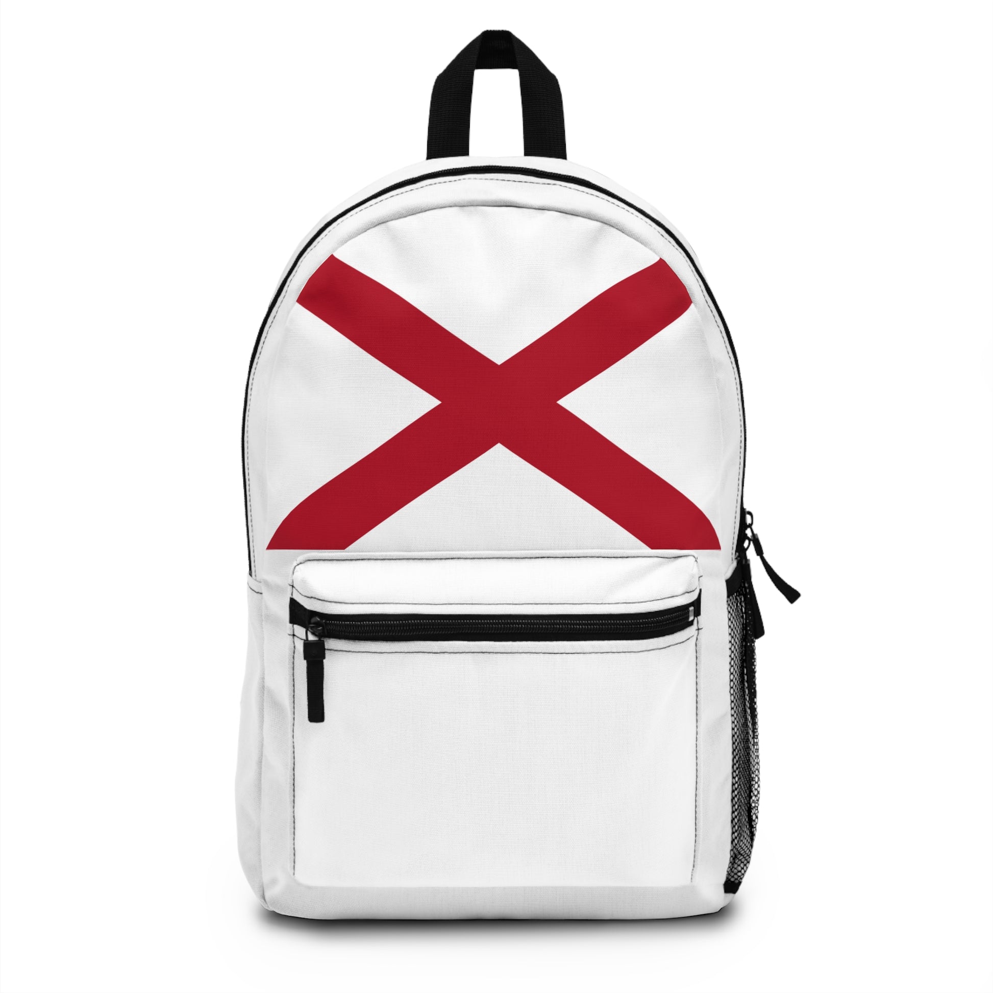 Show off your southern spirit with the Alabama Backpack, inspired by the bold simplicity of the Alabama state flag. Featuring the striking red St. Andrew’s cross on a crisp white background, this backpack captures the state’s pride and heritage in a sleek, durable design. Perfect for school, travel, work, or outdoor adventures, it’s a stylish way to celebrate the Heart of Dixie wherever you go.