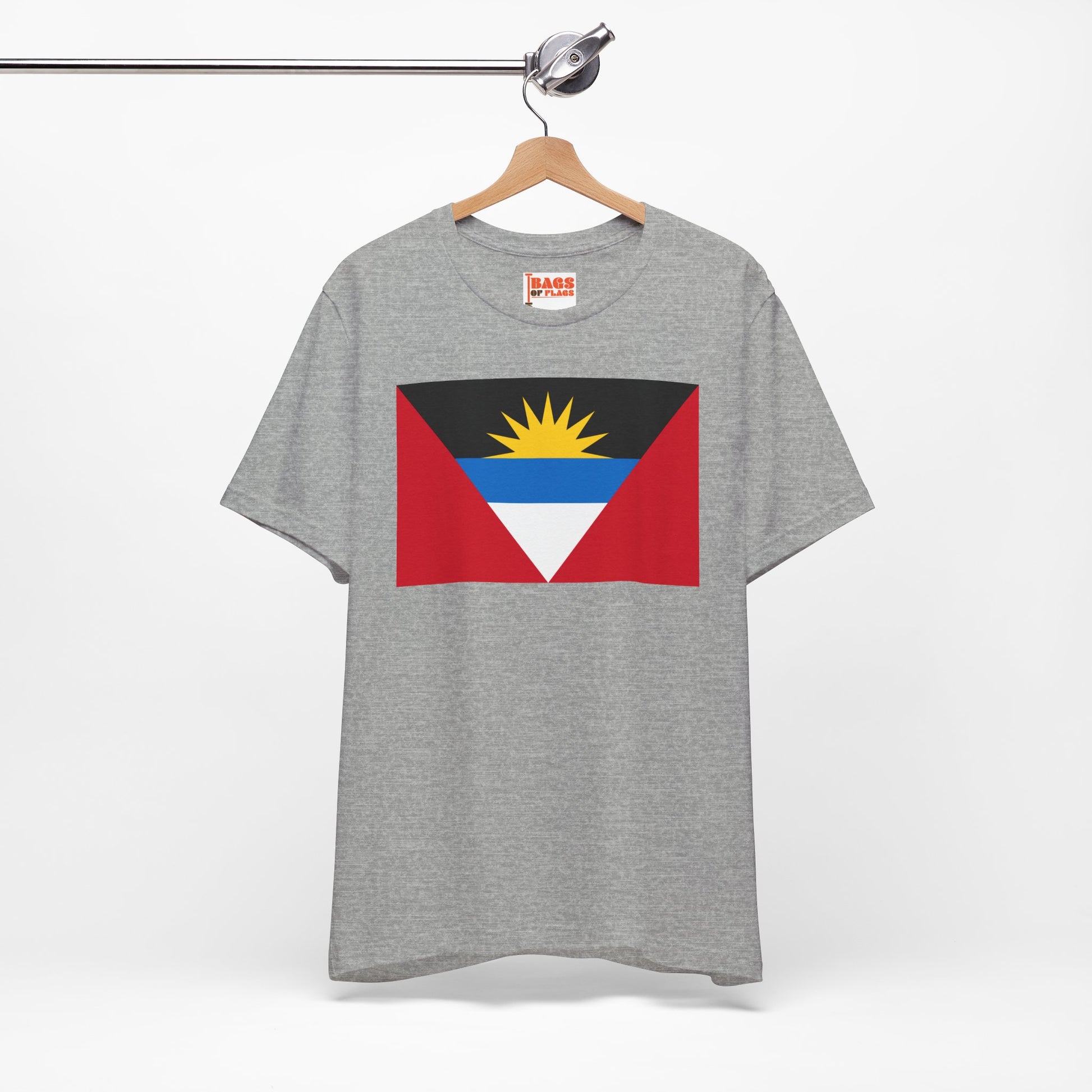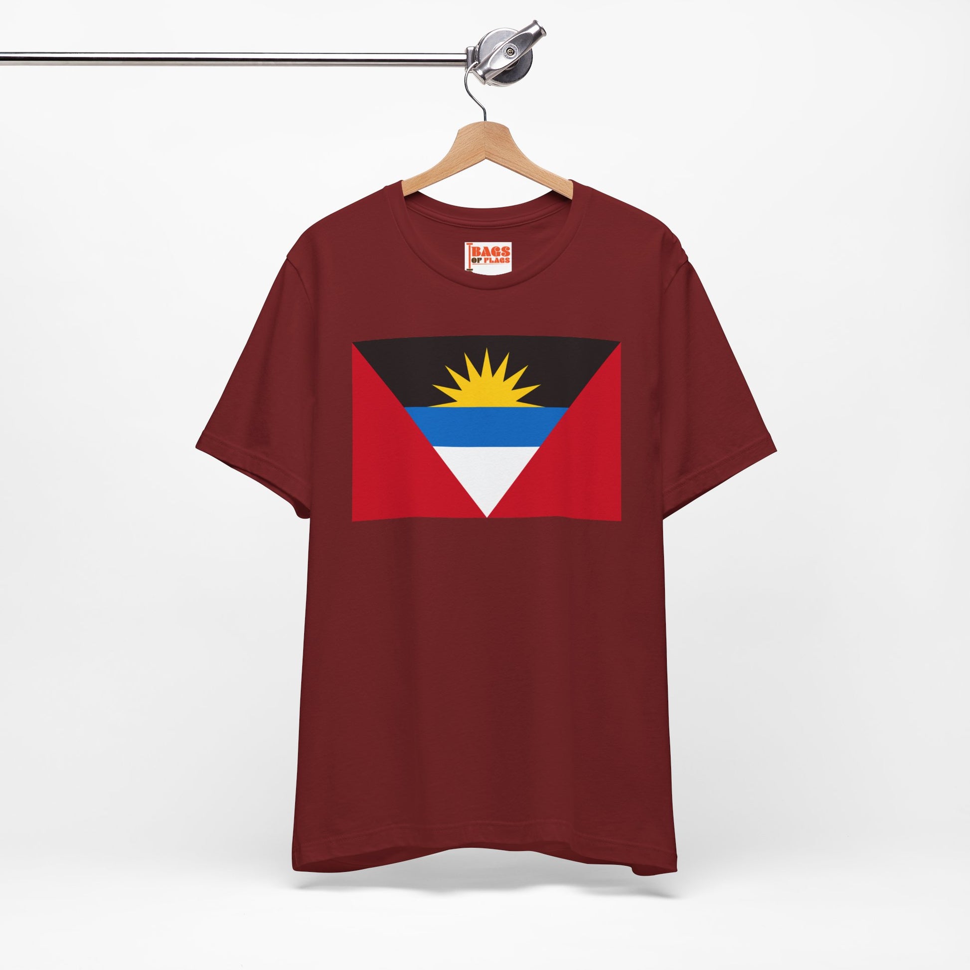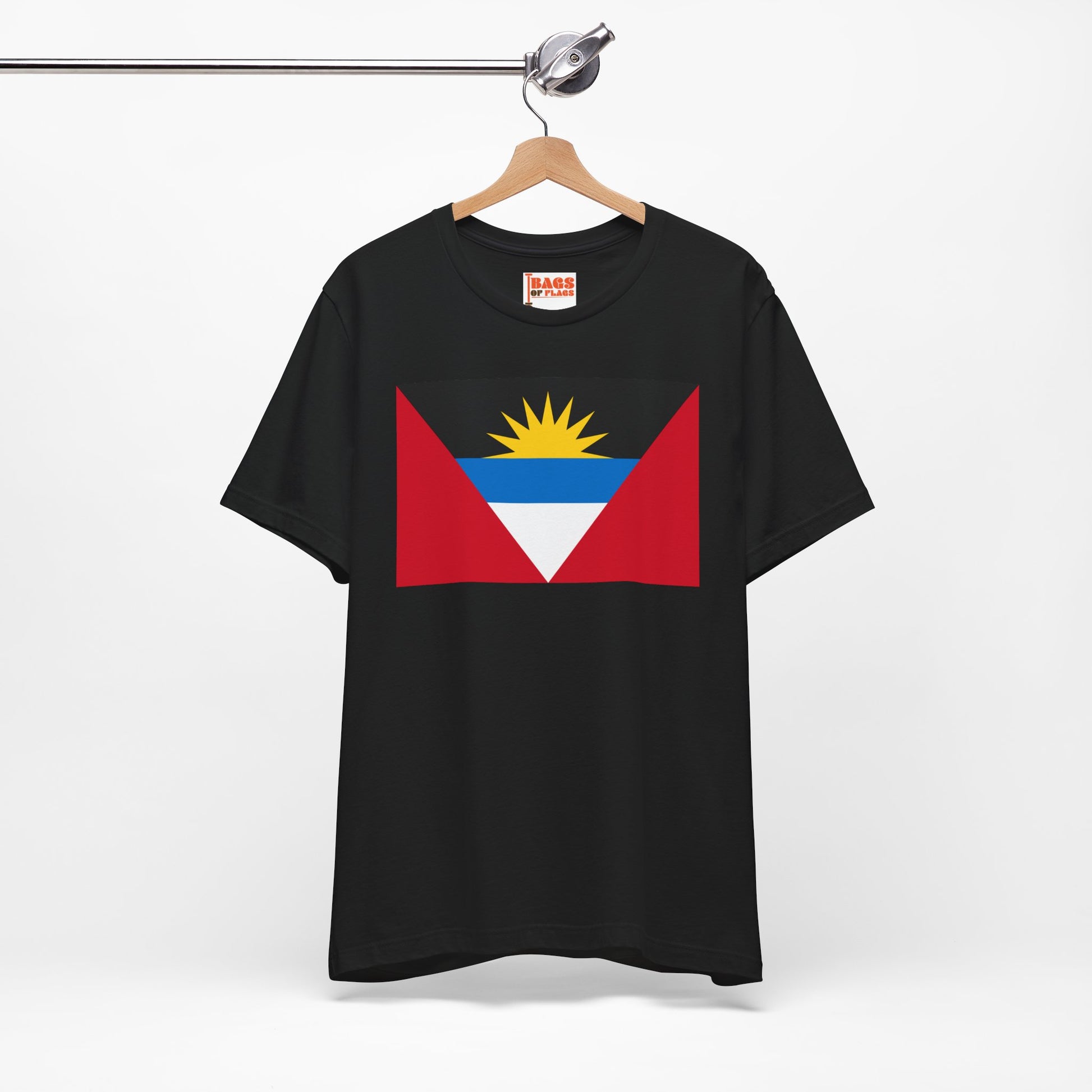 Let your style speak of sun, sea, and sovereignty with this Antigua and Barbuda Flag T-shirt. Featuring the unmistakable design of the national flag—complete with its rising sun, blue Caribbean waters, and bold red borders—this shirt captures the energy, resilience, and identity of this beautiful island nation.