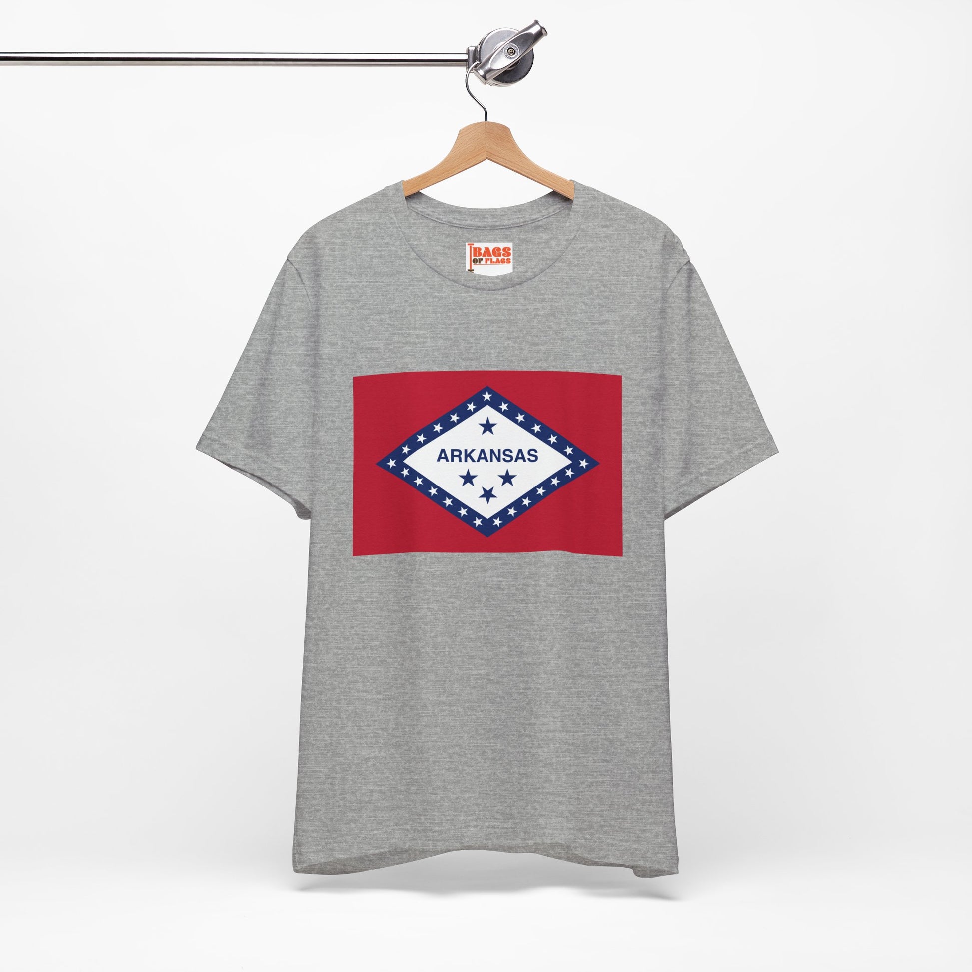 Proud, bold, and unmistakably Southern – our Arkansas Flag T-Shirts let you wear your state pride front and center. Designed for comfort and built to last, this unisex heavy cotton tee features a timeless Arkansas flag design printed on premium fabric that feels as good as it looks. Whether you're walking the banks of the Mississippi, hiking the Ouachitas, or just repping your roots from afar, this tee is your everyday connection to the Natural State.