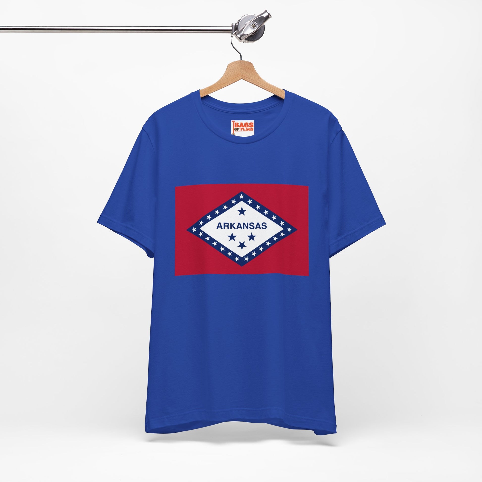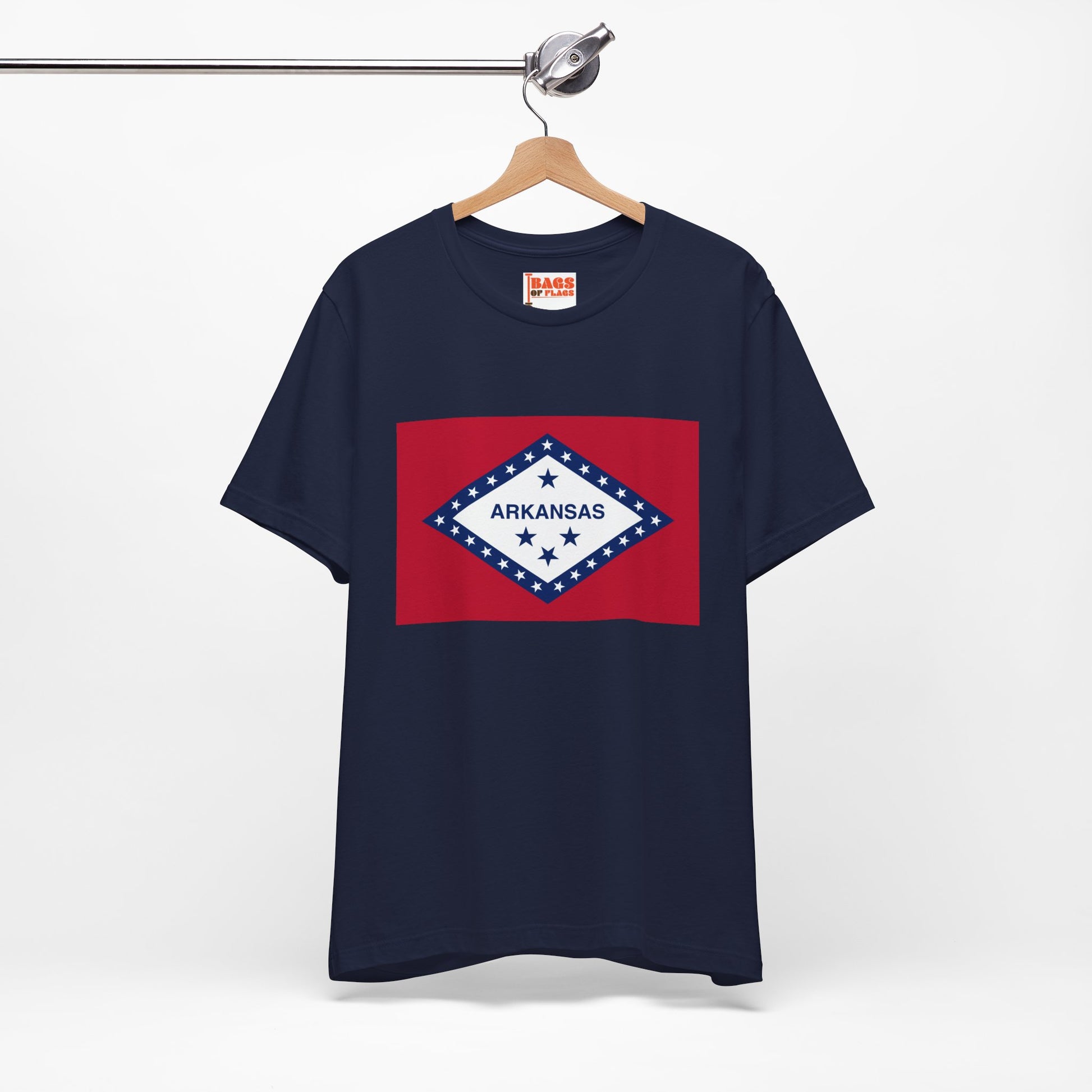 The Arkansas flag design on this shirt is more than just red, white, and blue. The large white diamond represents Arkansas as the only U.S. state where diamonds are naturally found. The 25 stars honor its position as the 25th state to join the Union, while the central star below the name pays tribute to its time as part of the Confederacy. This shirt isn’t just a fashion piece—it’s history stitched into fabric.