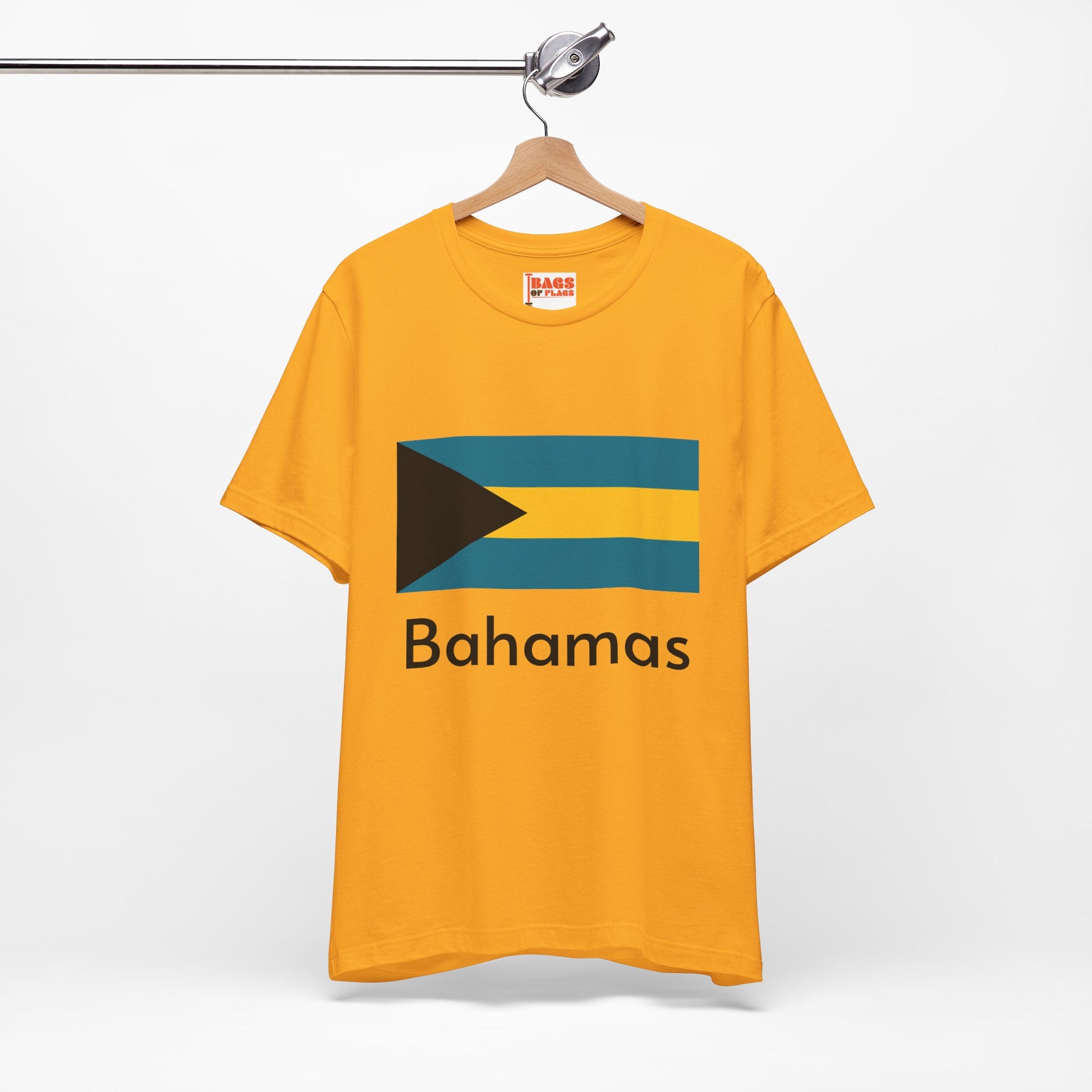 Step into the sunshine with our Bahamas T-shirts, designed to capture the laid-back spirit and vibrant culture of the beautiful Bahamas. This unisex tee features bright, eye-catching colors inspired by the Bahamian flag—the aquamarine, gold, and black triangle—bringing island pride to your everyday wardrobe. Perfect for beach days, casual hangouts, or sharing your love for the Bahamas wherever you go.