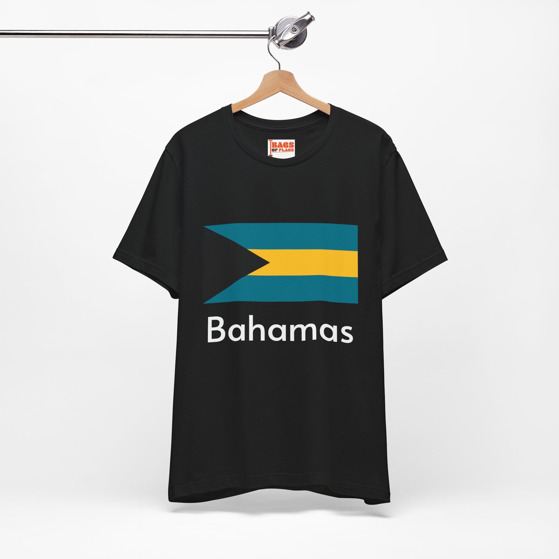 The Bahamas flag is rich with meaning—black represents the strength and will of the people, aquamarine symbolizes the surrounding Caribbean Sea, and gold stands for the sun and the islands’ natural resources. Wearing this tee is a vibrant way to share that spirit wherever you go.