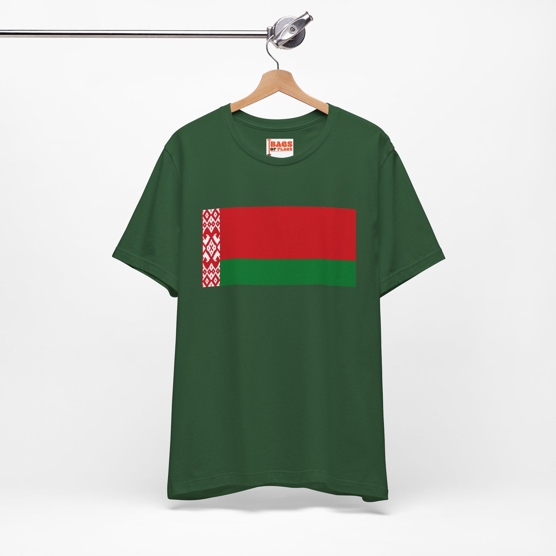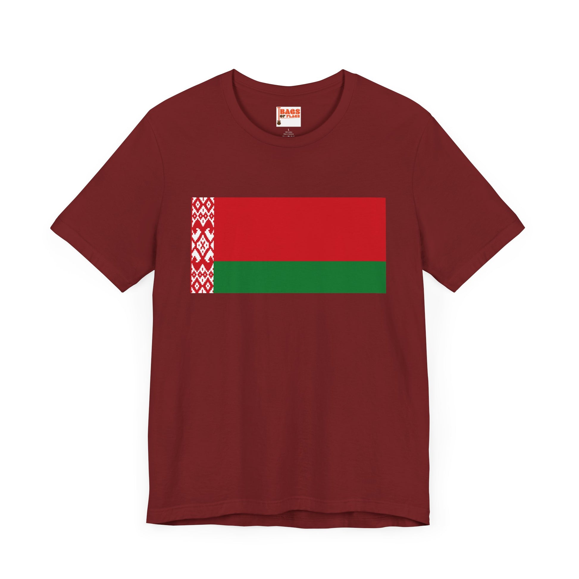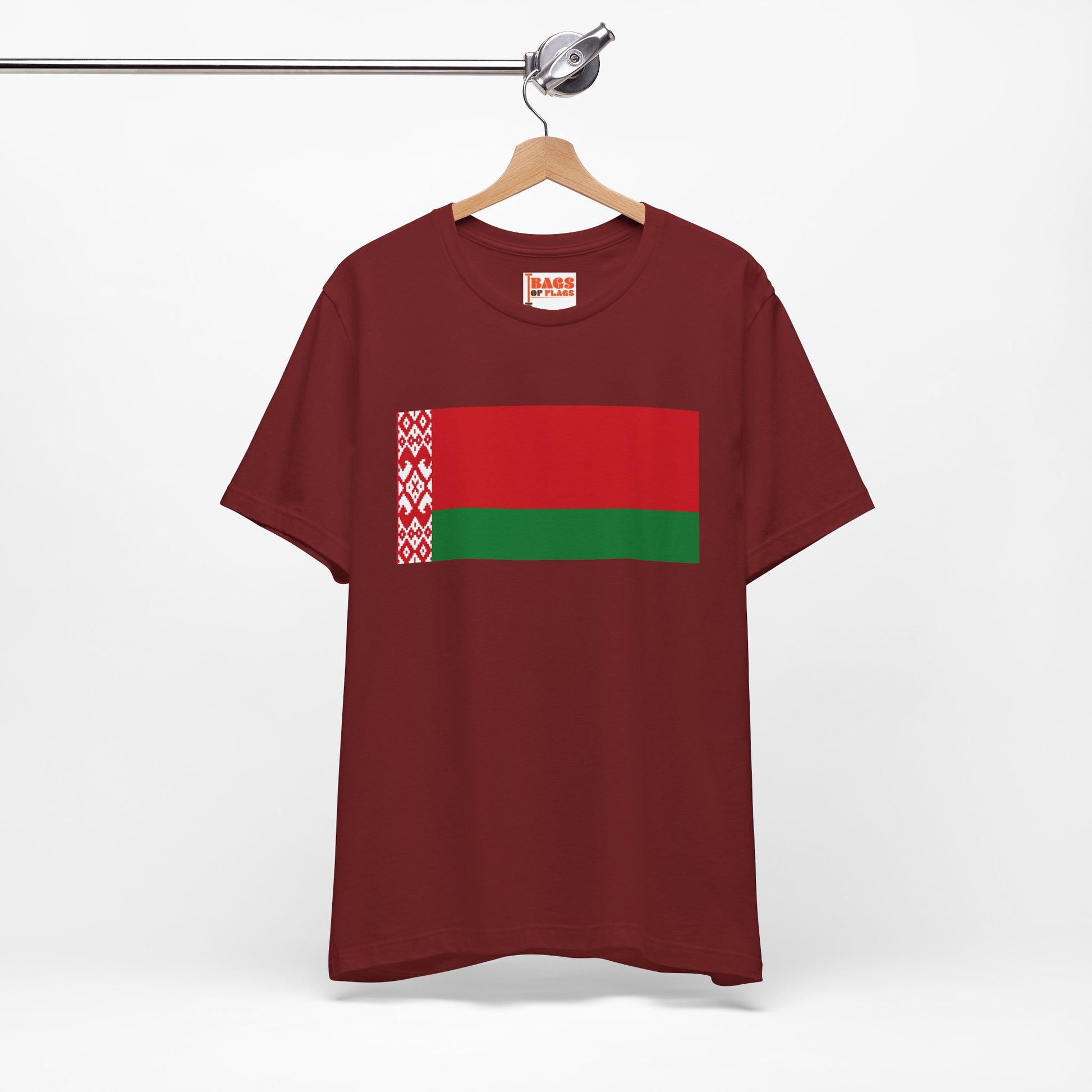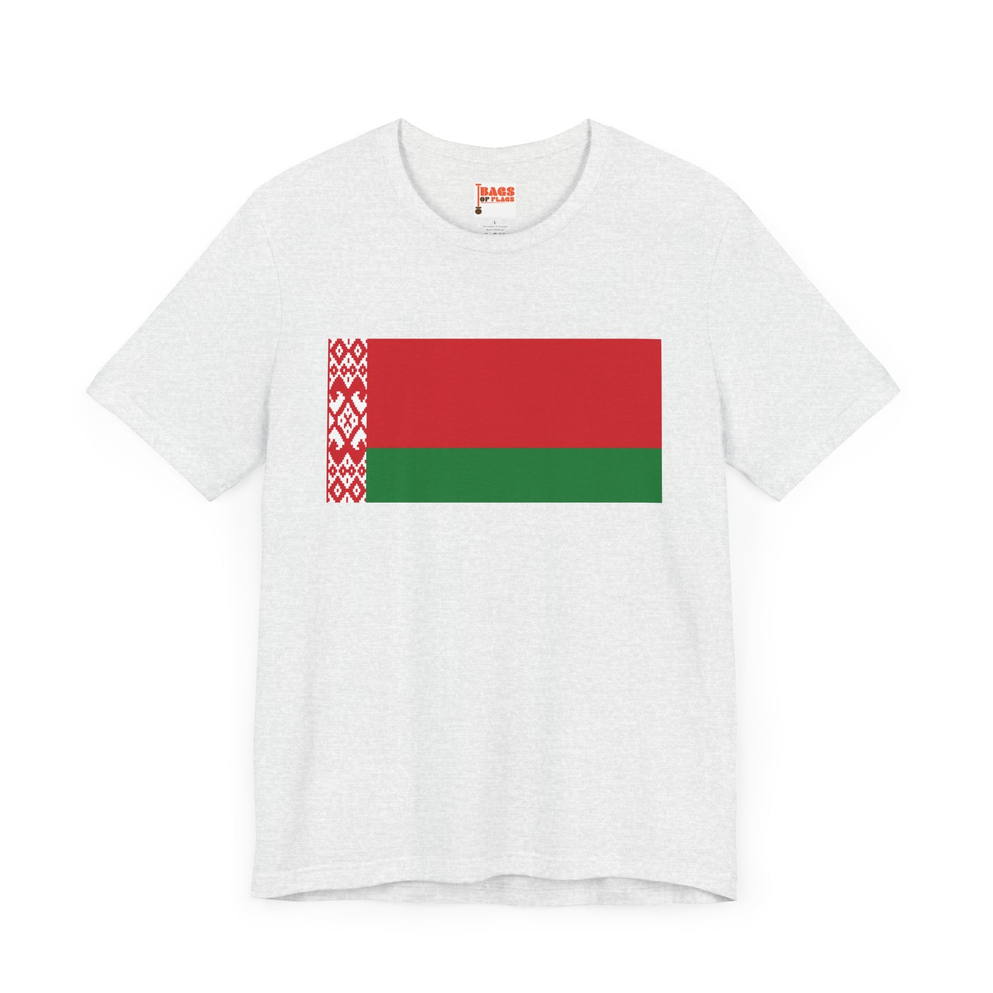 Honor the resilience, history, and identity of Belarus with our Belarus Flag T-shirt. Featuring the bold red-and-green national flag with the iconic Belarusian ornamental pattern along the hoist side, this shirt is perfect for expressing cultural pride, showing solidarity, or simply making a meaningful style statement.