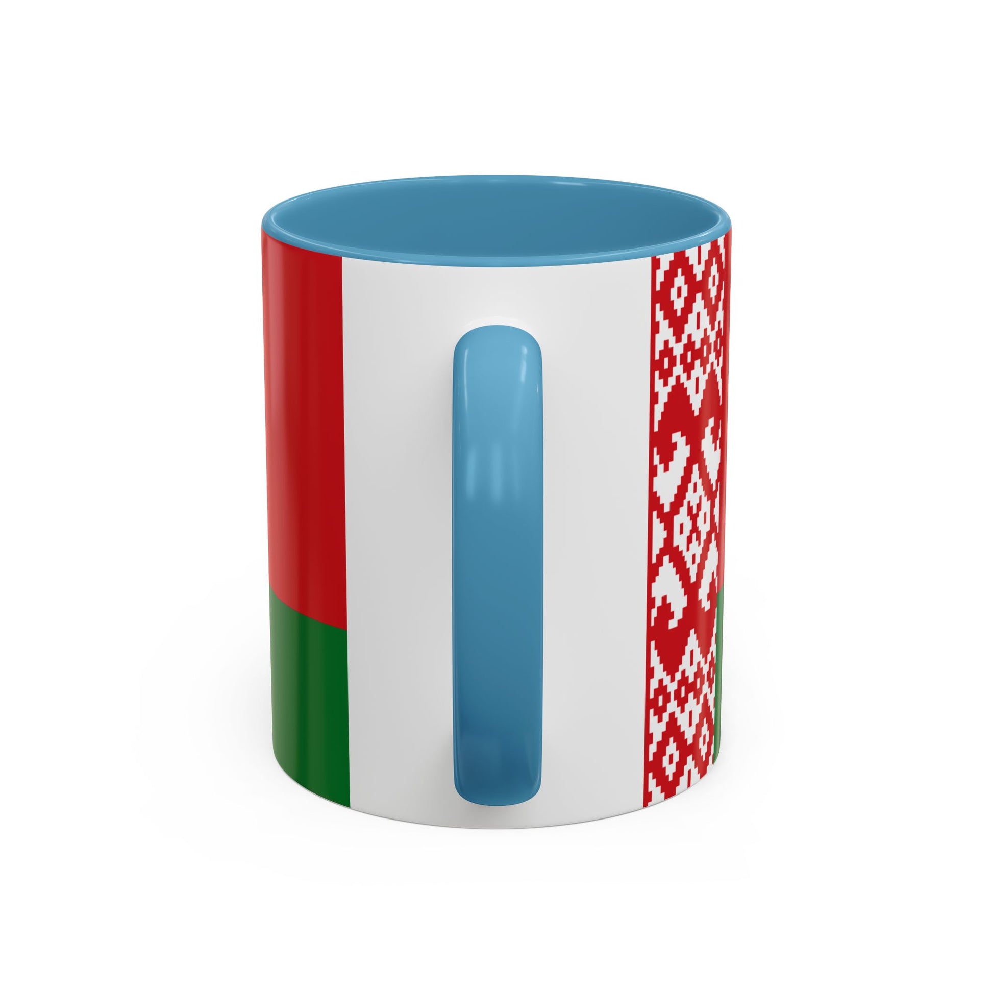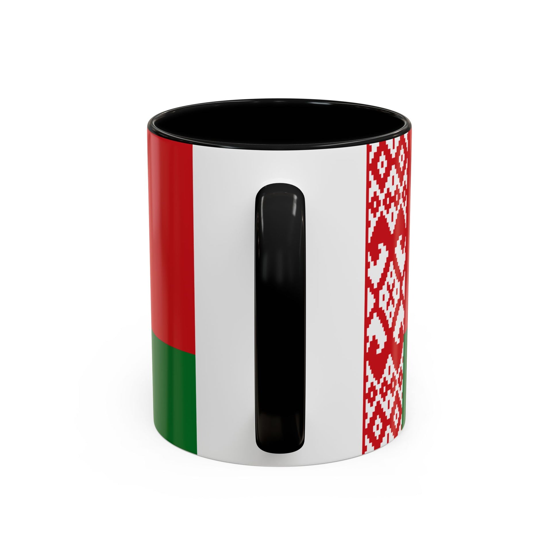 The flag of Belarus features two horizontal bands of red and green, with a decorative red-and-white pattern along the hoist. Red represents the nation’s past struggles and the sacrifices of its people, while green symbolizes hope, life, and the forests of Belarus. The traditional pattern reflects the country’s cultural heritage and artistry. Using the Belarus Mug brings these meaningful national symbols into your daily life.