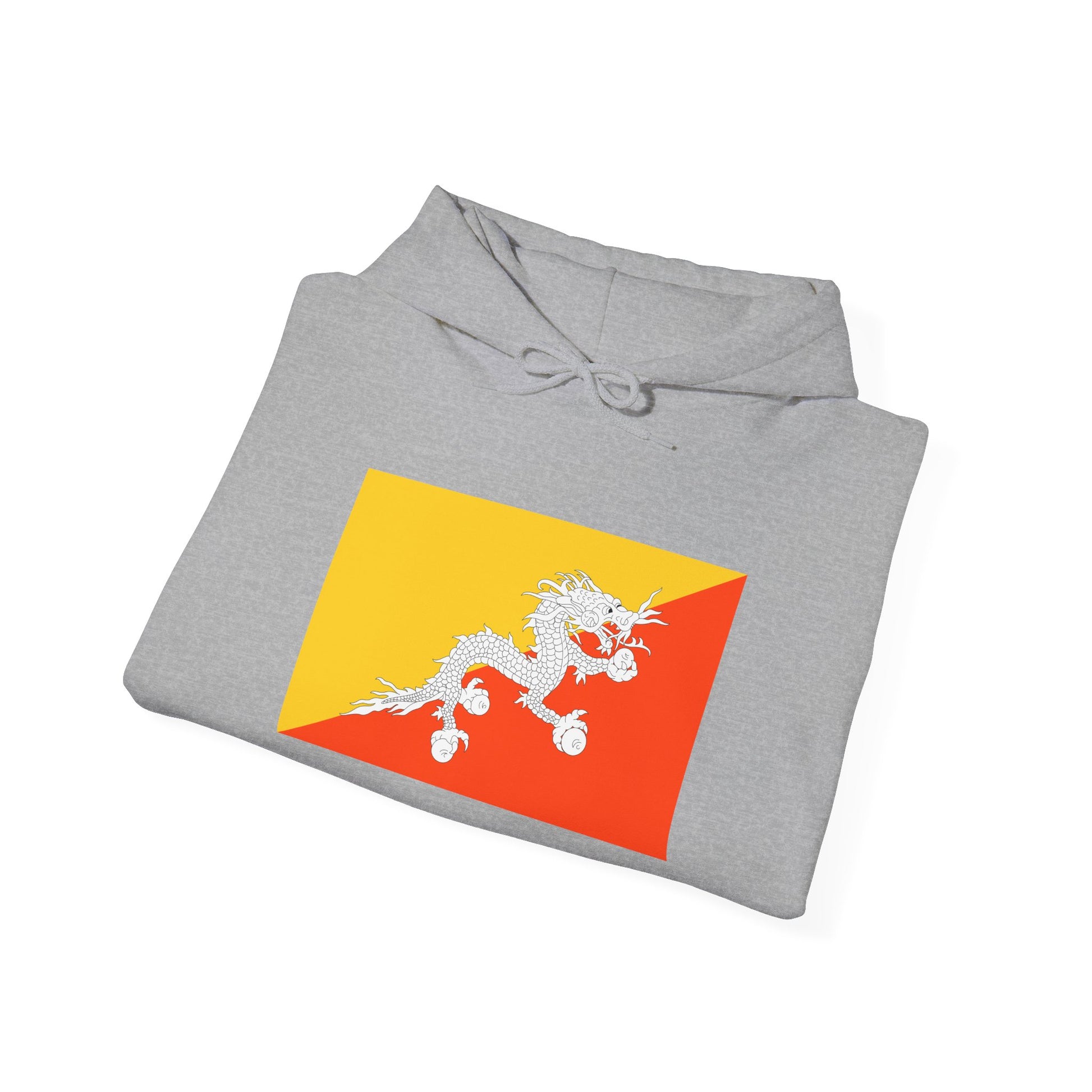 Show your pride and love for the Himalayas with the Bhutan Flag Hoodie, inspired by the striking Bhutan flag. Featuring the iconic yellow and orange diagonal background with the majestic white dragon at the center, this hoodie celebrates Bhutanese heritage, culture, and spiritual symbolism. Perfect for Bhutanese, travelers, or anyone drawn to flag-inspired fashion, it’s a cozy and stylish way to honor Bhutan.