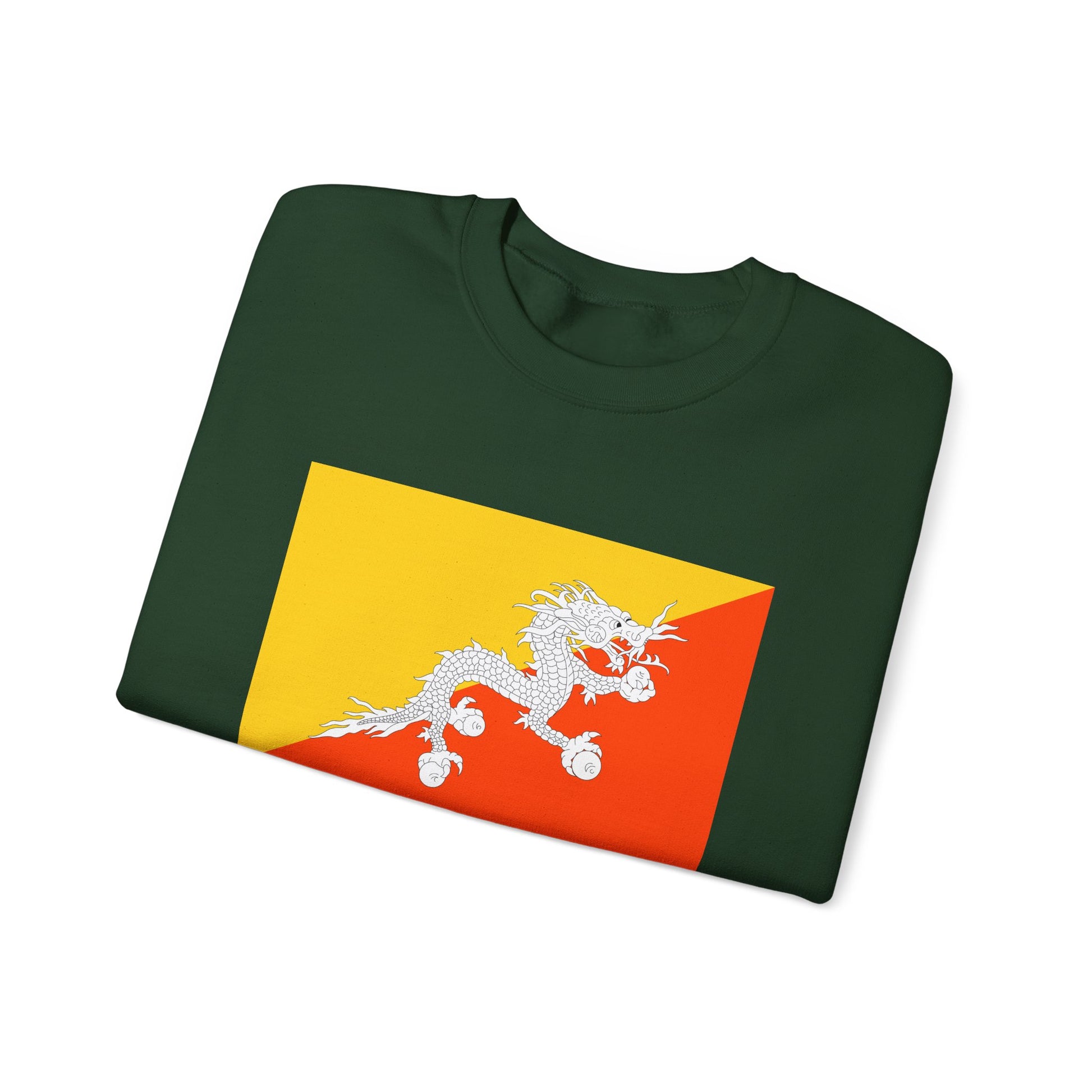 The Bhutan Sweatshirt draws its inspiration from the national flag. The yellow represents the secular authority of the king, while the orange signifies the spiritual tradition of Buddhism. The iconic dragon on the flag symbolizes the protection of the country and the power of the people, while the jewels held in its claws stand for wealth and security. Wearing this sweatshirt is a comfortable and stylish way to honor Bhutanese heritage and culture.