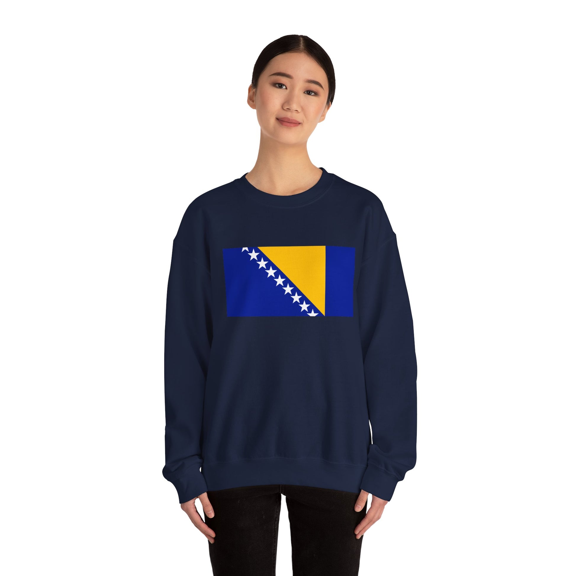 Show your Balkan pride with the Bosnia and Herzegovina Flag Sweatshirt, a unisex crewneck that prominently features the Bosnia and Herzegovina flag. With its distinctive blue and yellow colors and diagonal stars, this sweatshirt is a stylish way to honor the country’s heritage while staying cozy. Perfect for casual outings, cooler days, or expressing your connection to Bosnia and Herzegovina, it combines cultural significance with comfort.
