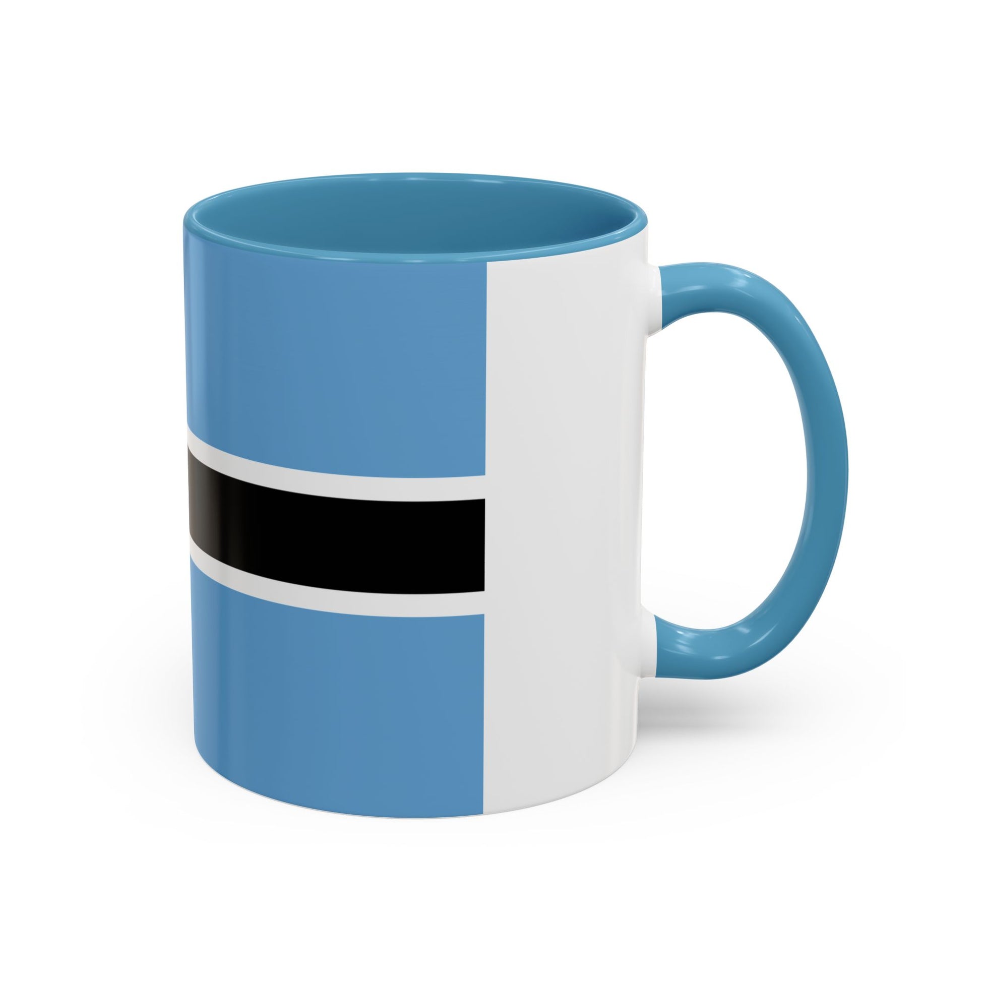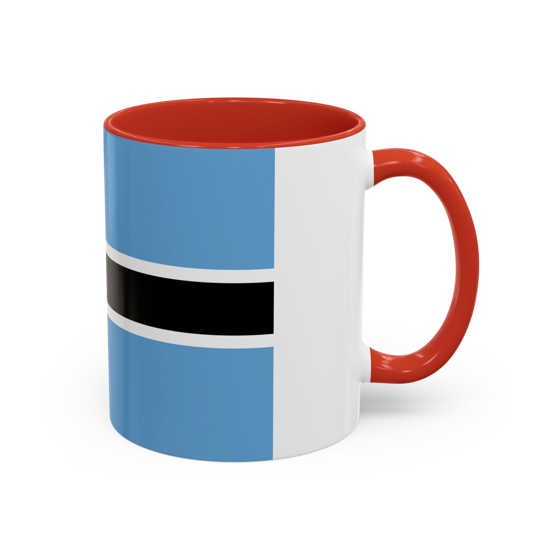 Bring a touch of African pride to your daily routine with the Botswana Mug. Crafted from durable white ceramic with a glossy finish, this mug combines practicality with a design inspired by the Botswana flag. Its colorful interior and handle create a striking contrast, while the ergonomic C-shaped grip ensures comfortable sipping of coffee, tea, or hot chocolate.