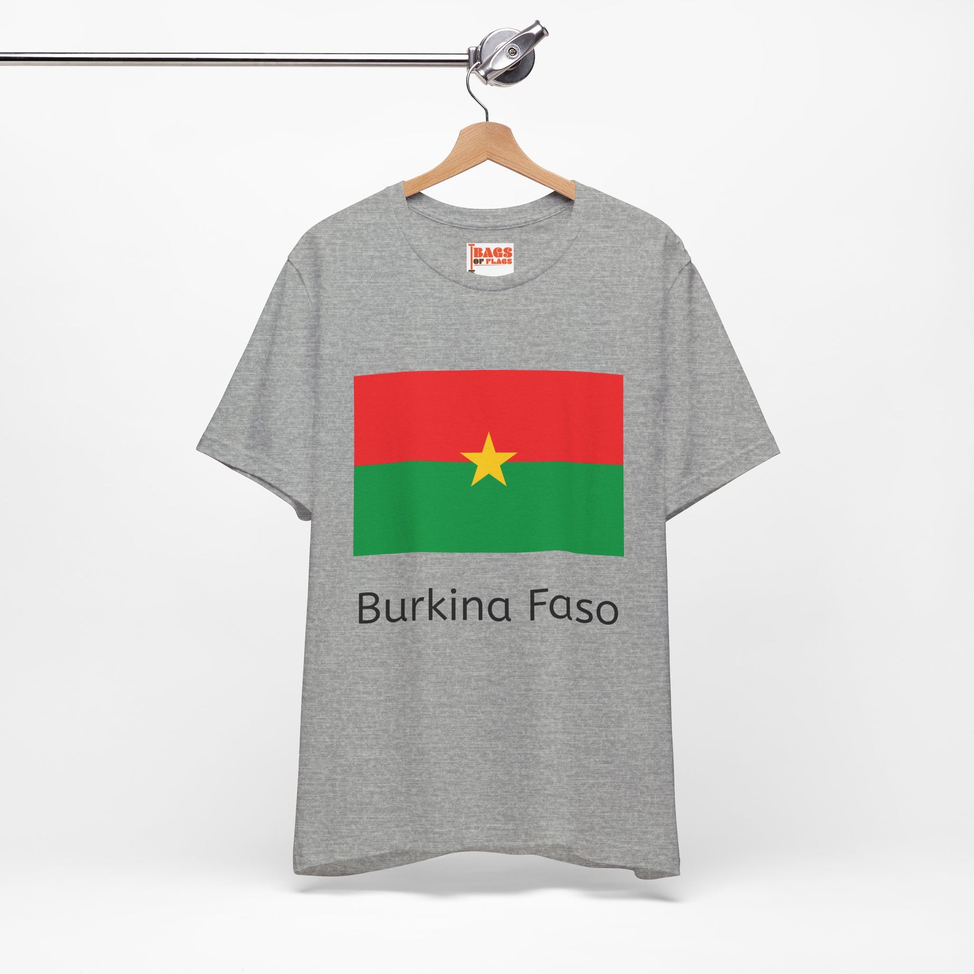 Celebrate the vibrant spirit of Burkina Faso with our Burkina Faso T-shirts, crafted to bring the striking red, green, and golden star of the national flag to life. Made from ultra-soft, breathable cotton, these unisex tees blend comfort with eye-catching design, perfect for showing off your connection to Burkina Faso’s rich culture and history. Whether you’re attending a cultural event, supporting a cause, or just want a unique statement piece, this Burkina Faso flag T-shirt is a standout addition to your wardrobe.