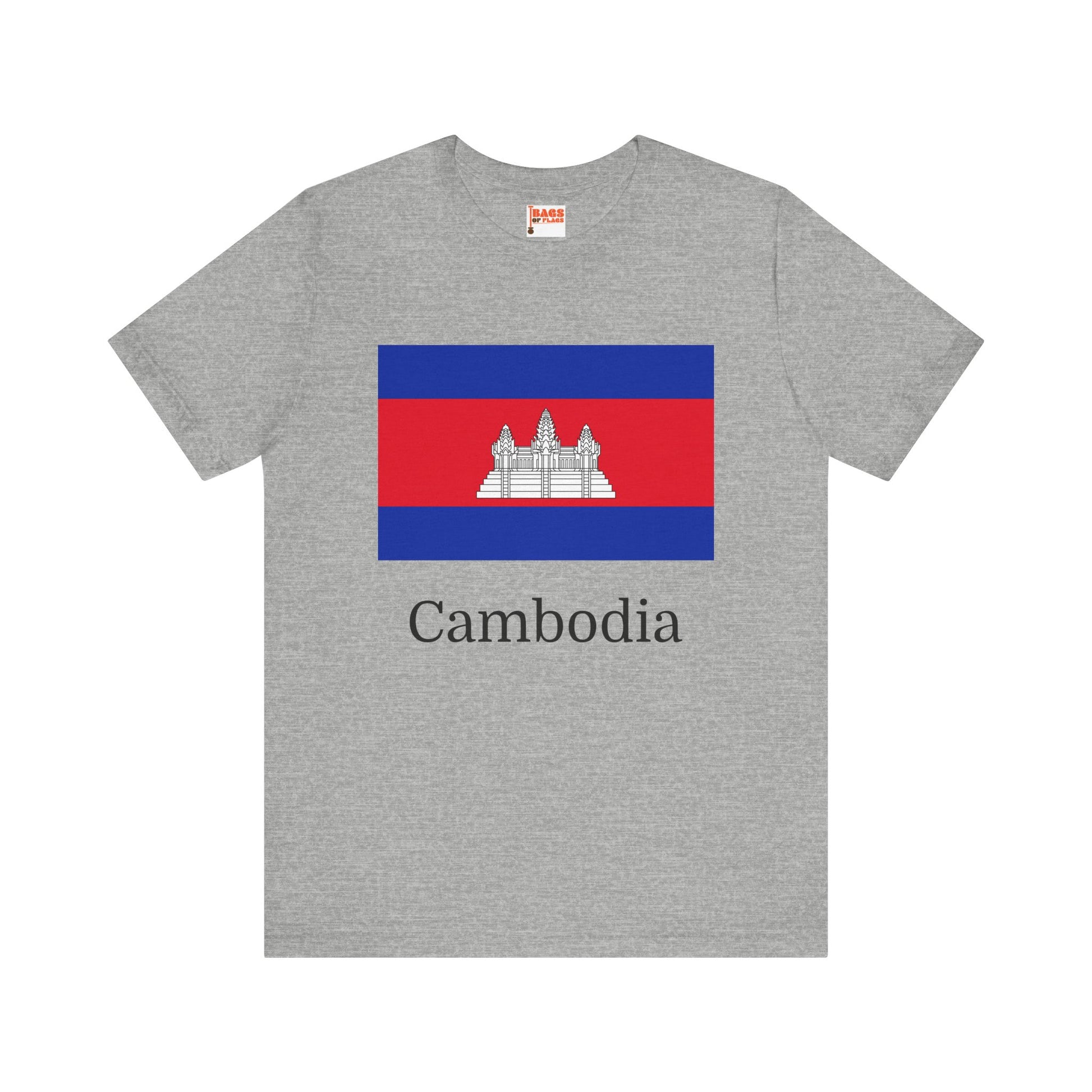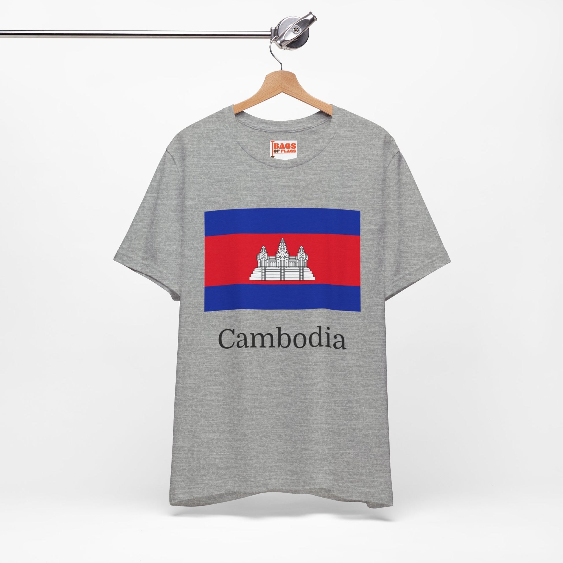 Embrace the vibrant heritage of Cambodia with our exclusive Cambodia Flag T-Shirts, adorned with the iconic national flag design. These shirts highlight the vivid red and blue horizontal stripes, centered by the majestic white silhouette of Angkor Wat, a symbol of the country's historical and spiritual essence. The red represents courage and sacrifice, while the blue embodies freedom and the monarchy. Ideal for anyone who cherishes cultural heritage and thoughtful design, our Cambodia T-Shirts provide a fashionable means to celebrate and connect with Cambodia’s distinct identity.