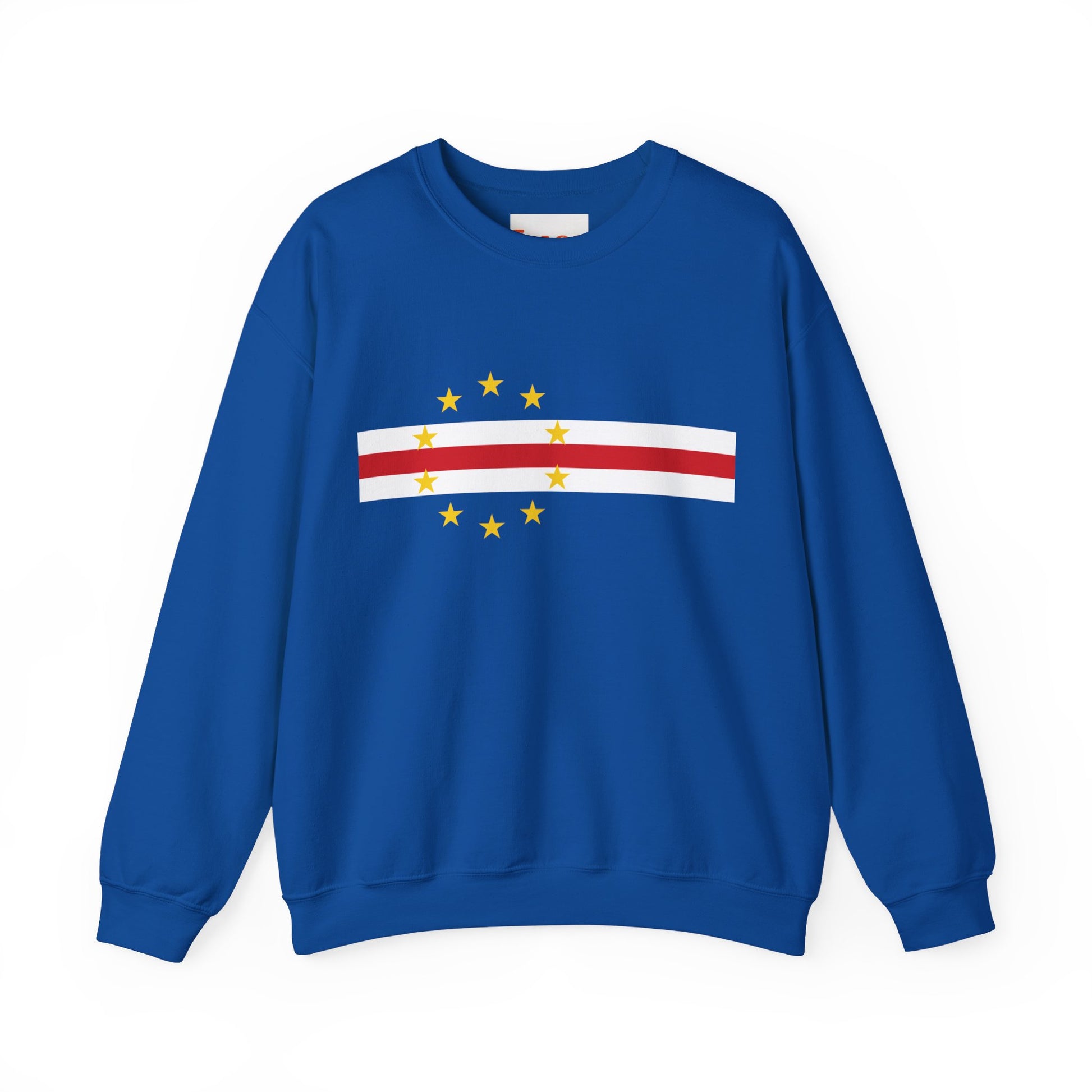 The Cape Verde Inspired Sweatshirt reflects the story told by the country’s flag. The deep blue represents the Atlantic Ocean and the endless sky that surrounds the islands, while the red stripe honors the struggles and sacrifices made for freedom. A circle of ten yellow stars represents the unity of the islands, shining brightly as a symbol of connection and identity. The white lines crossing the blue field stand for peace and progress, values that continue to guide Cape Verde’s future.