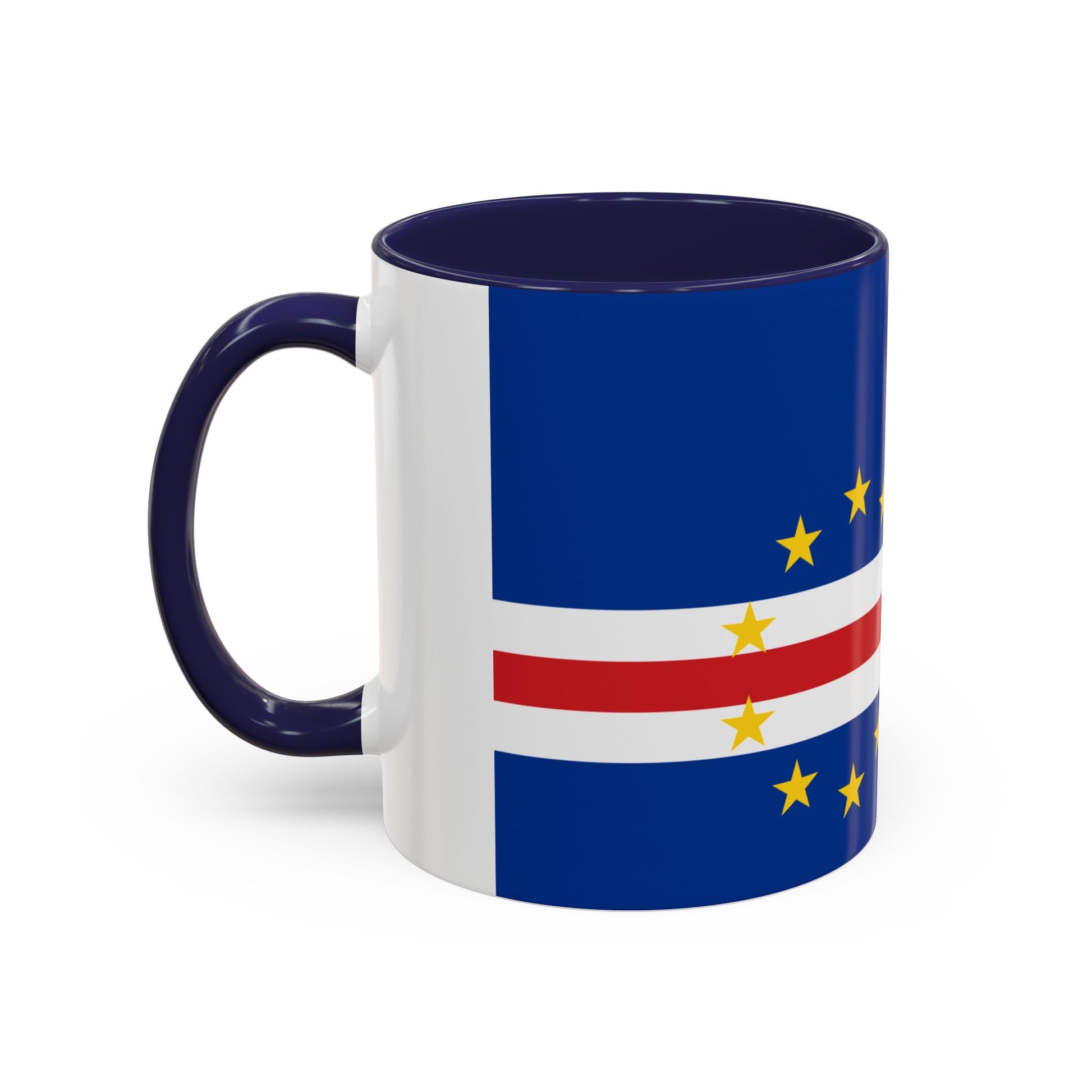 The flag of Cape Verde features a blue field with three horizontal stripes (white, red, white) across the lower half and a circle of ten yellow stars off-center toward the hoist. Blue represents the ocean and sky, white stands for peace, red symbolizes effort and determination, and the ten stars represent the ten main islands of the nation. Using the Cape Verde Mug allows you to carry these meaningful national symbols into your everyday life.