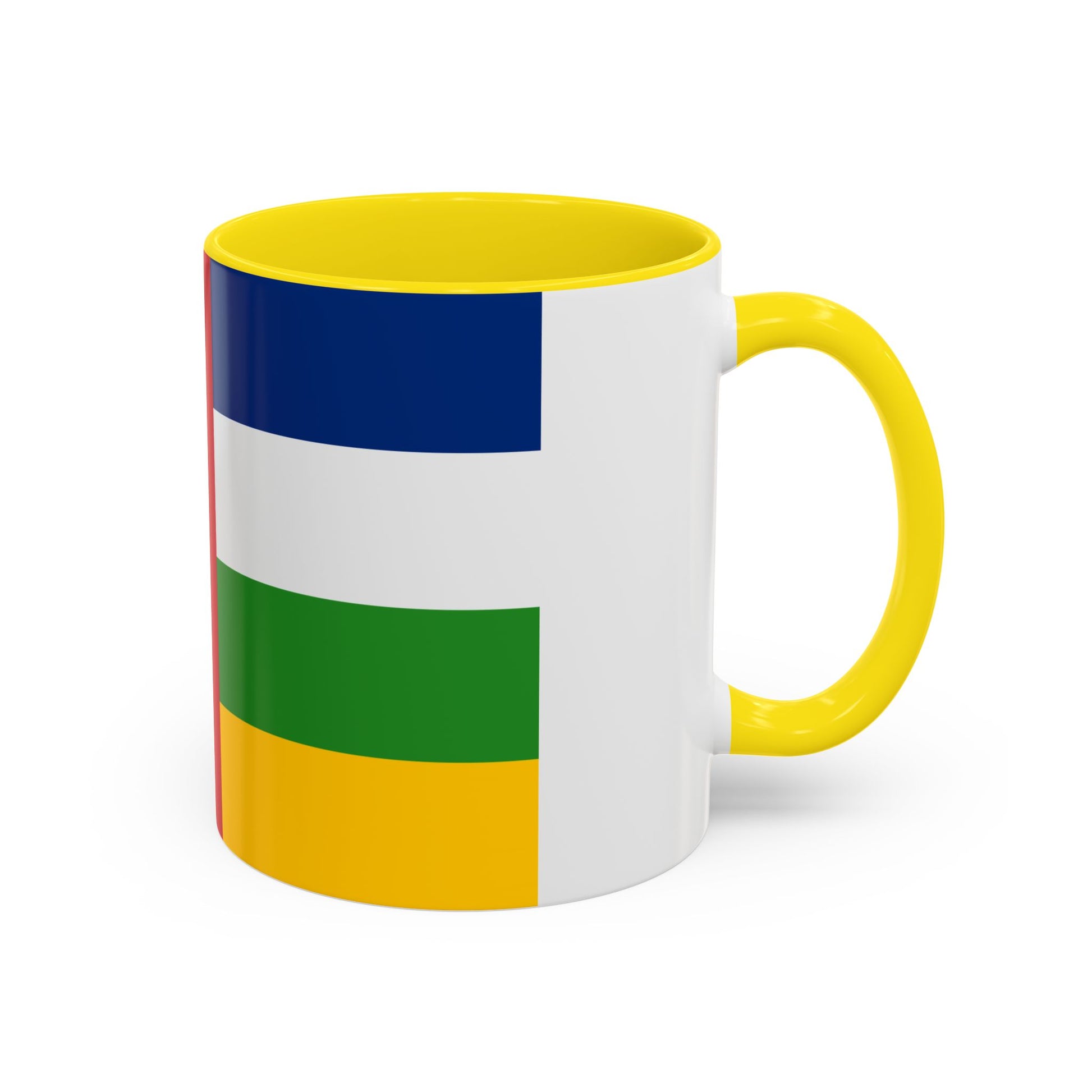 The flag of the Central African Republic features four horizontal bands of blue, white, green, and yellow crossed by a vertical red band, with a yellow five-pointed star in the upper hoist corner. Blue represents freedom, white symbolizes purity, green stands for hope, and yellow reflects tolerance. The red vertical stripe represents the blood uniting all Africans, while the star signifies independence. Using the Central African Republic Mug allows you to celebrate these meaningful national symbols with every drink.