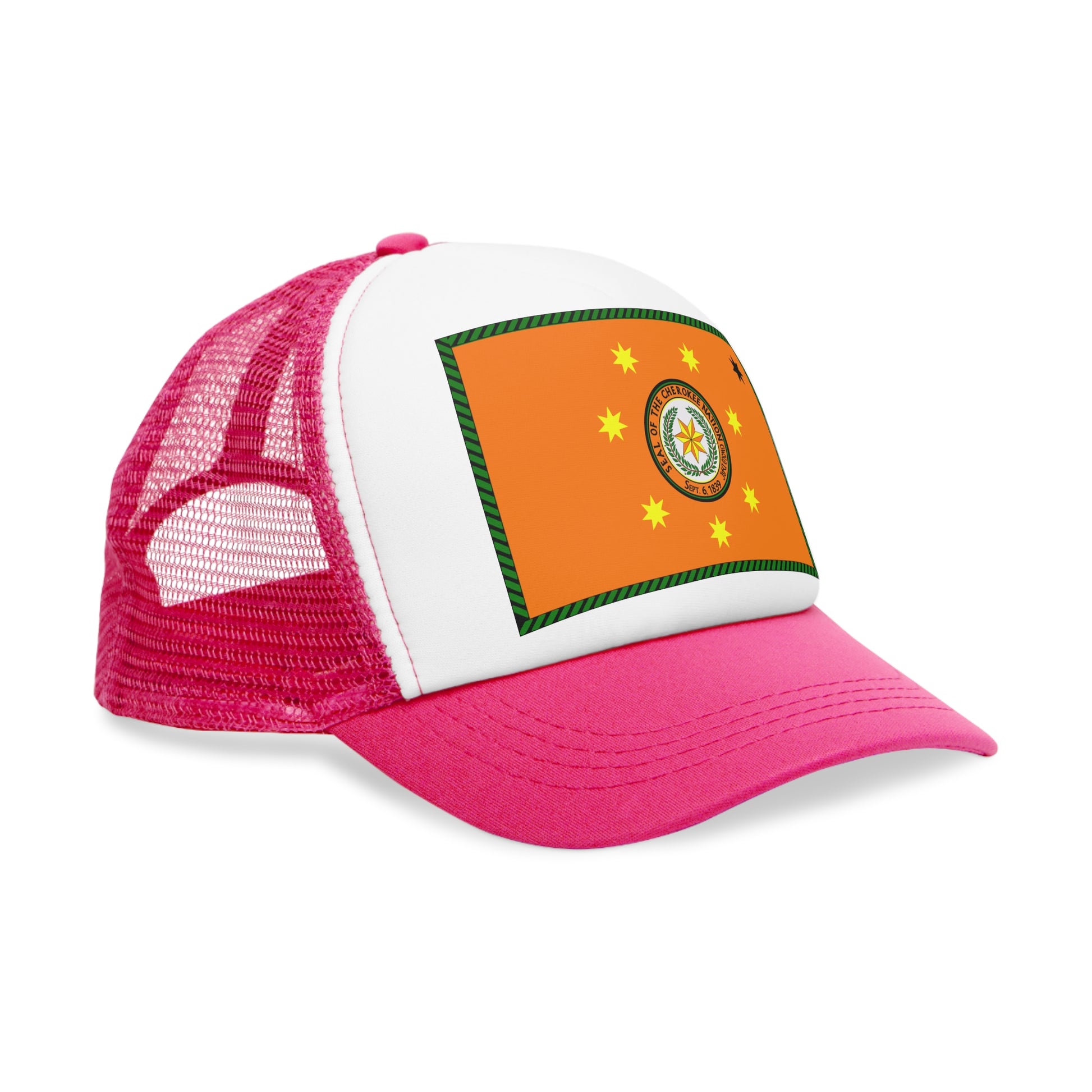 The Cherokee Trucker Cap celebrates the resilience, unity, and enduring spirit of the Cherokee people. Inspired by symbols representing the seven clans and the Cherokee commitment to community and identity, this design reflects honor, tradition, and ancestral connection. Wearing this cap is a tribute to cultural preservation, a reminder of shared history, and a proud representation of Cherokee sovereignty and enduring heritage.