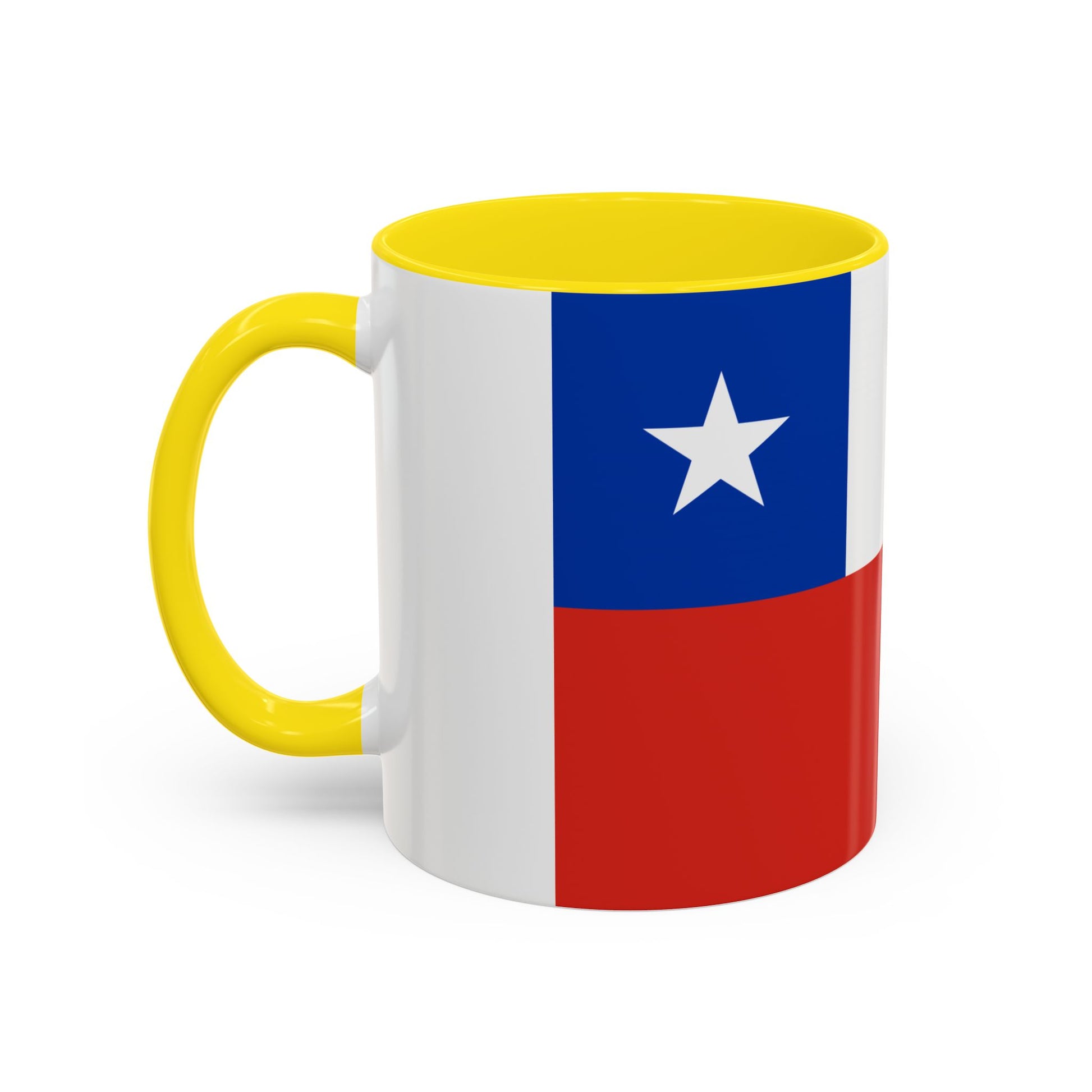 Bring a touch of South American pride to your coffee or tea routine with the Chile Mug. Crafted from durable white ceramic with a glossy finish, this mug combines everyday practicality with design inspired by the Chilean flag. Its colorful interior and handle add a lively contrast, while the ergonomic C-shaped grip ensures comfort with every sip.