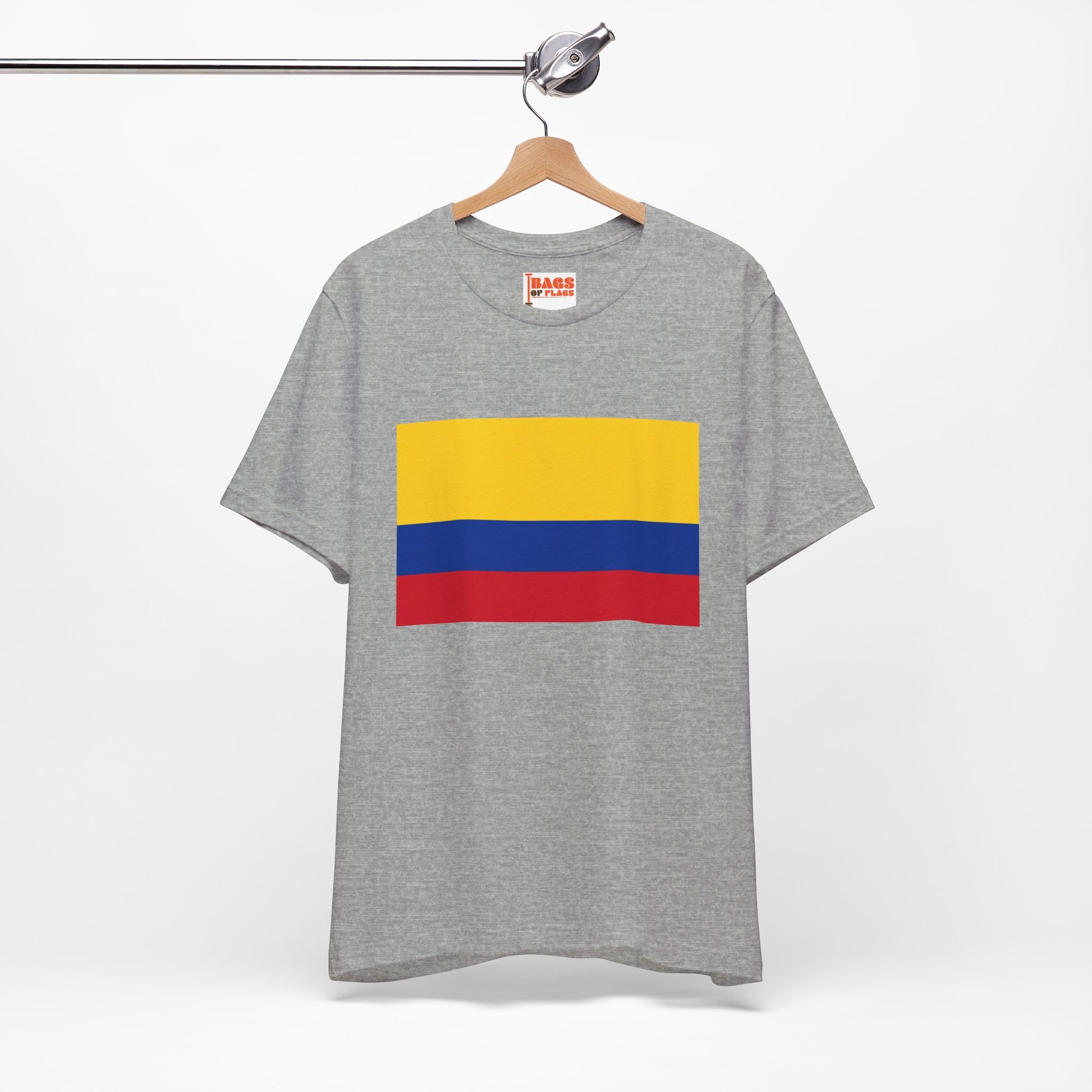 Show off your love for Colombia with this Colombia Flag T-shirt, featuring the bold and vibrant colors of the Colombian flag. Crafted for comfort and style, this tee is perfect for anyone proud to represent Colombia’s rich heritage and spirited culture. Whether you're attending a cultural event or just want to add a splash of color to your everyday wardrobe, this t-shirt brings the iconic yellow, blue, and red flag to life in a soft, breathable fabric.
