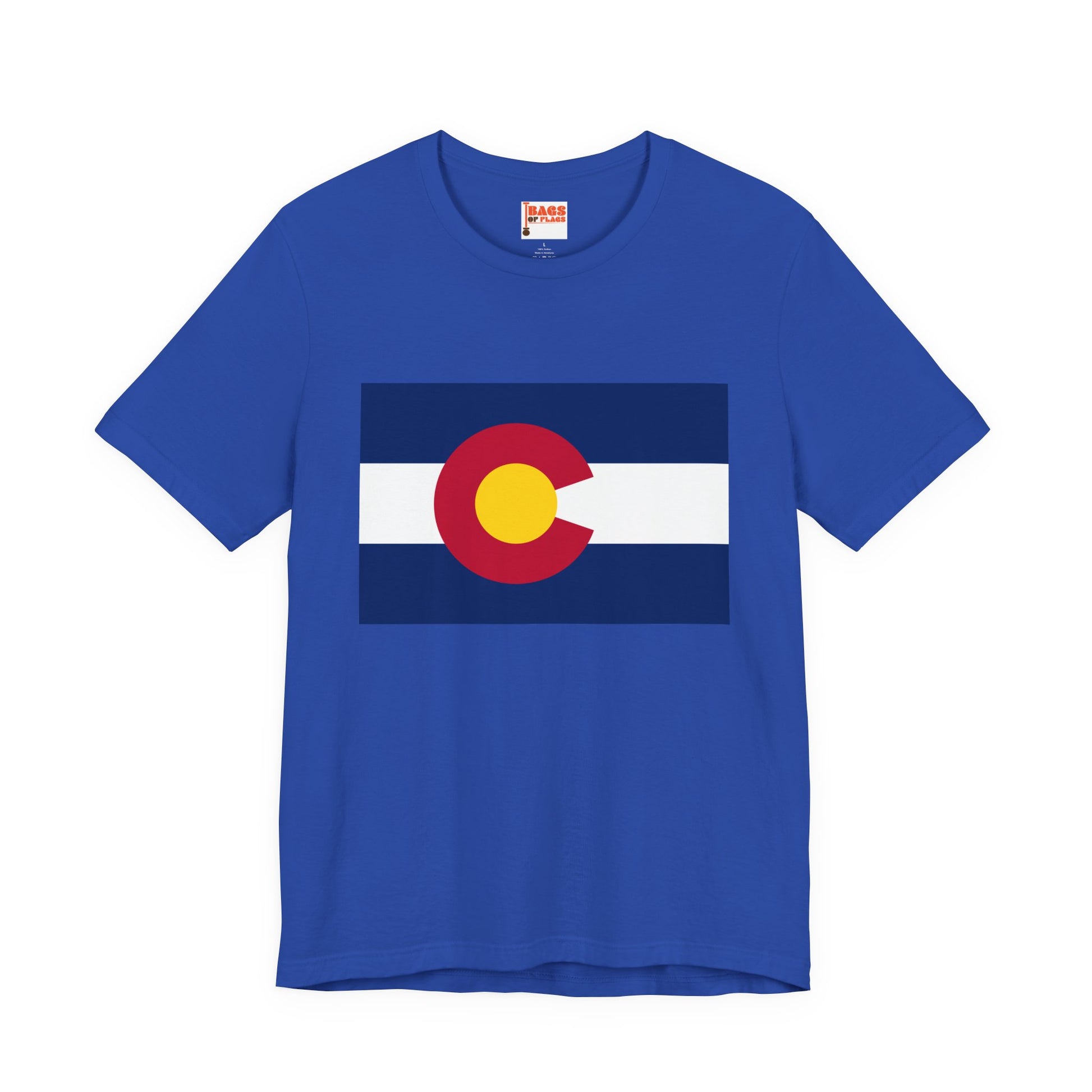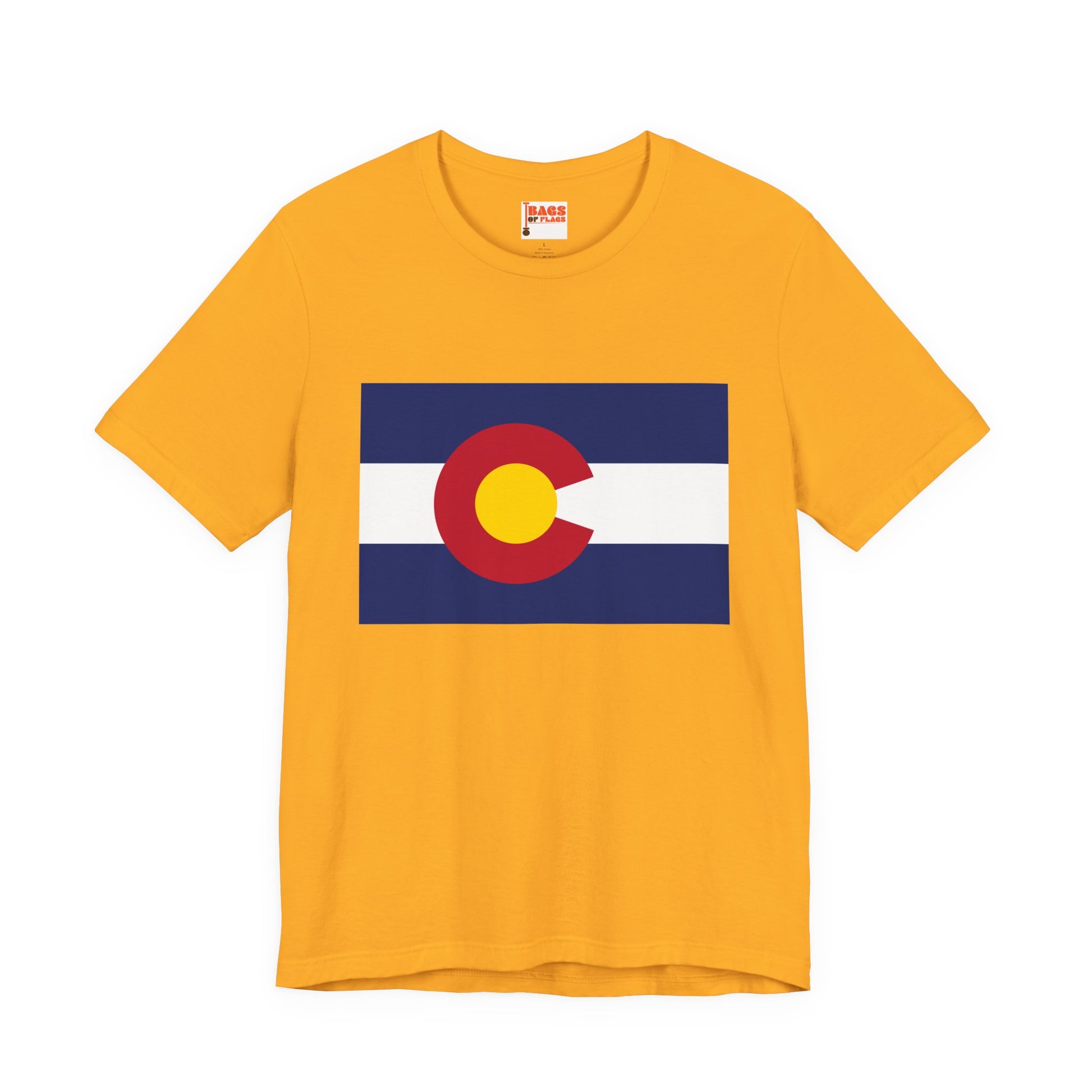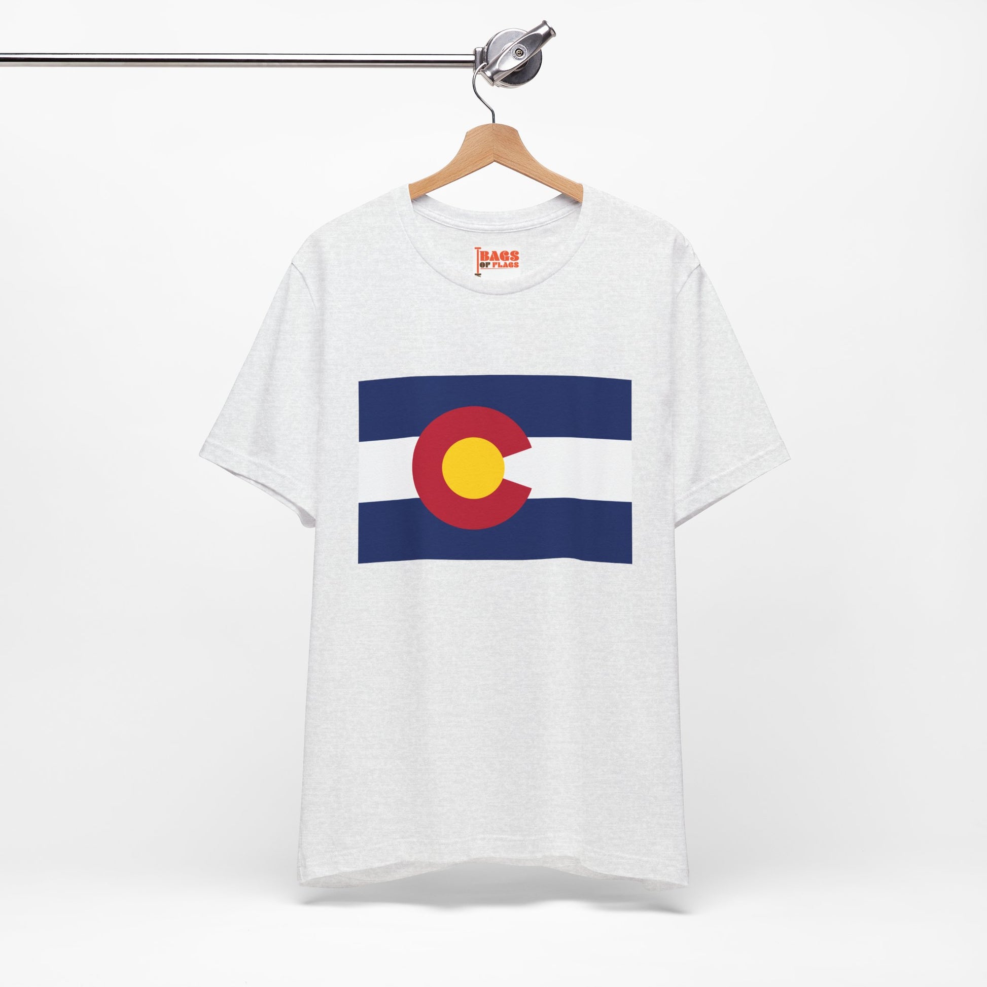Celebrate the Centennial State with this Colorado Flag T-shirt, a unisex tee that blends comfort, durability, and iconic state pride. Featuring the bold and distinctive Colorado state flag, this shirt showcases the striking “C” emblem in red, the golden disc, and the blue and white stripes—perfect for showcasing your love for Colorado, whether you’re hiking in the Rockies, exploring Denver, or simply relaxing at home.