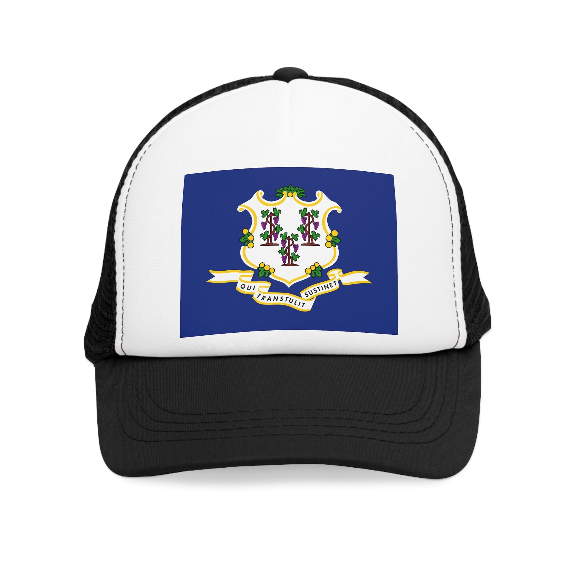 Showcase New England charm and state pride with the Connecticut Trucker Cap, a relaxed everyday piece that blends timeless style with a bit of regional spirit. Featuring a crisp printed Connecticut state flag on the structured front panel, this cap brings a clean and polished feel while still staying casual. Whether you're strolling coastal towns, exploring historic villages, or just enjoying a peaceful day outdoors, it brings comfort and personality to your look.