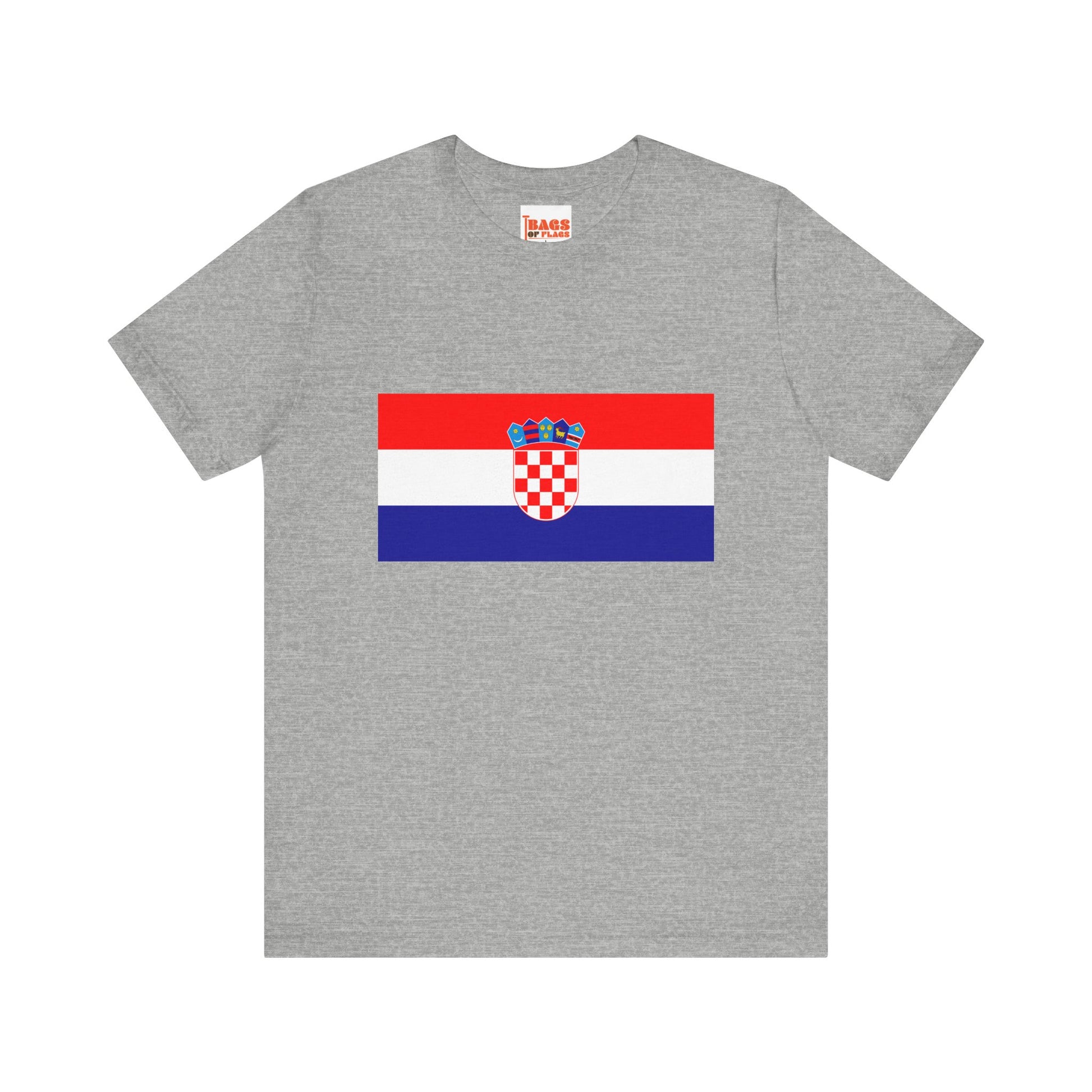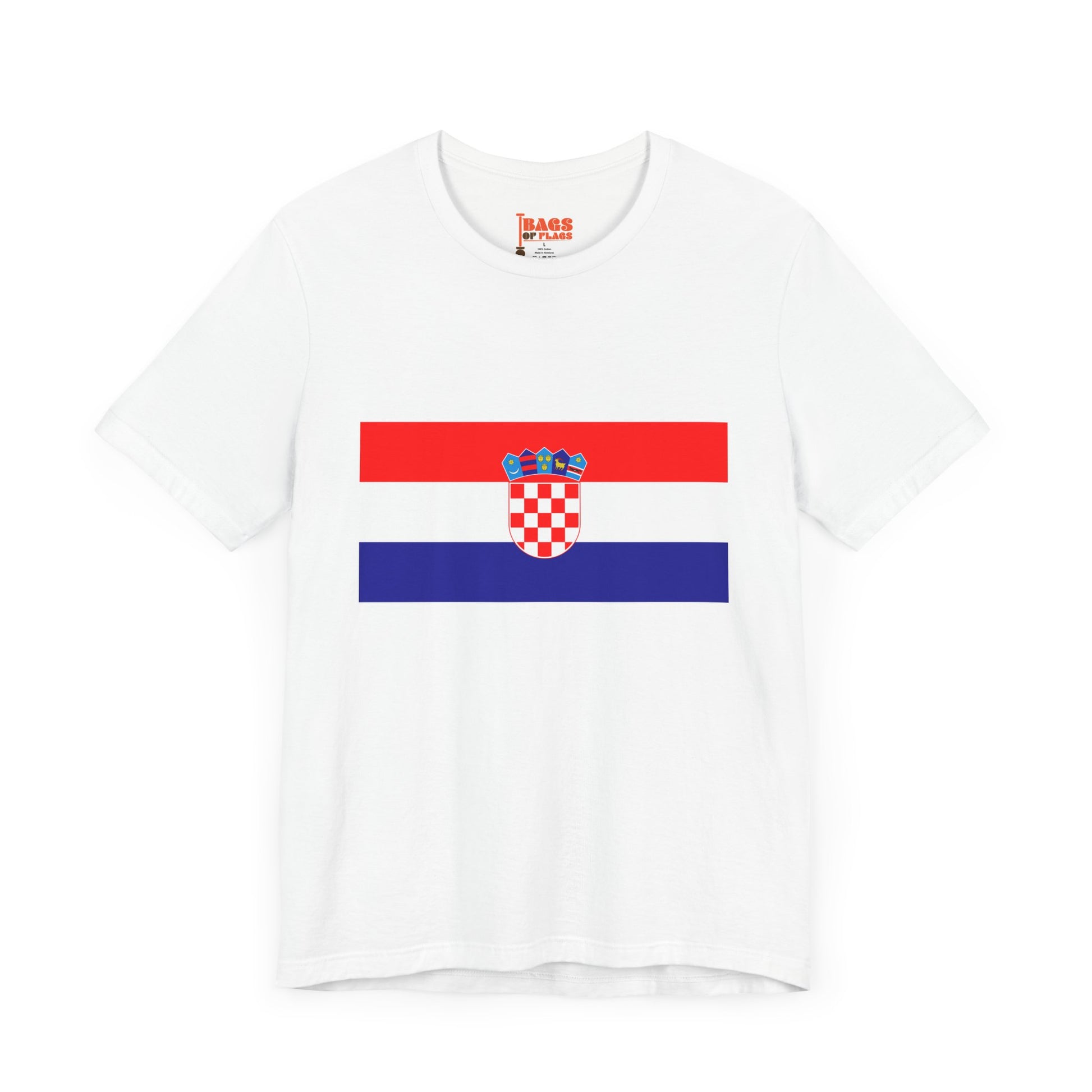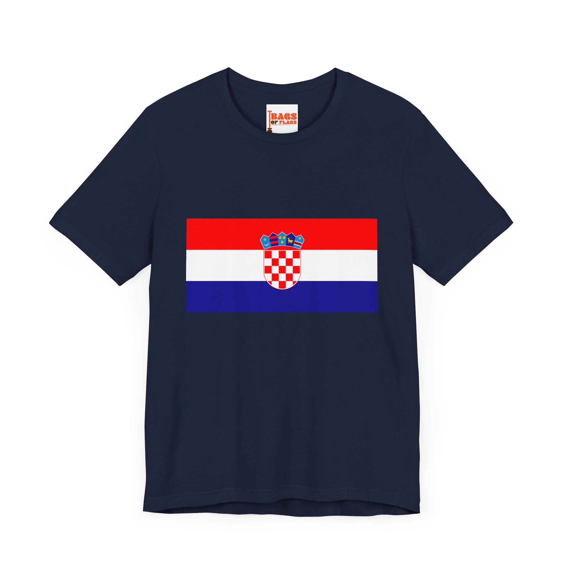 Show off your pride for the Adriatic gem with this bold and stylish Croatia Flag T-shirt. The design features the iconic red, white, and blue horizontal tricolor with Croatia’s unmistakable coat of arms front and center—five small shields above the traditional checkerboard pattern. Whether you're watching the Vatreni dominate the pitch, exploring your roots, or just repping a country known for its coastline and culture, this tee keeps your look fresh and meaningful.