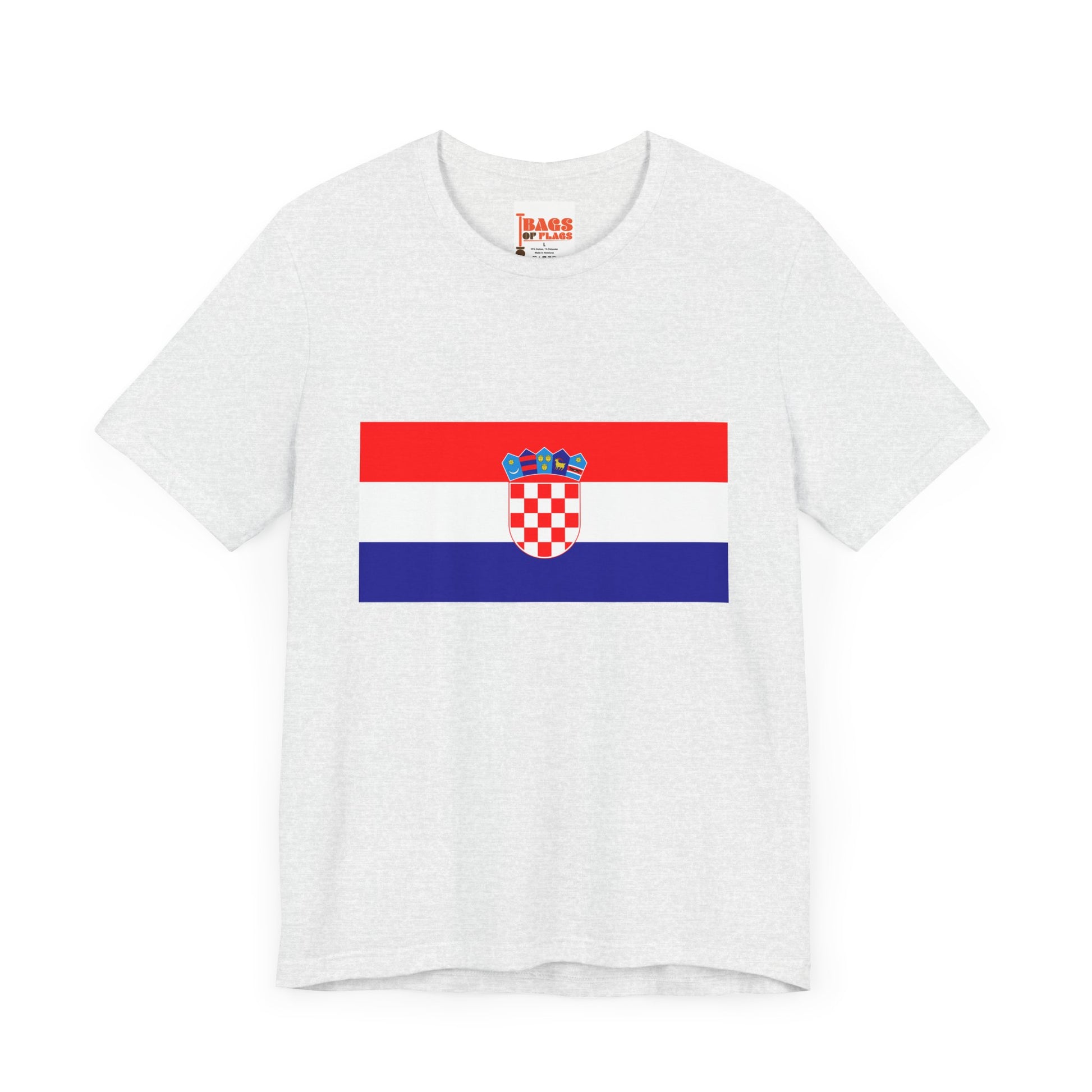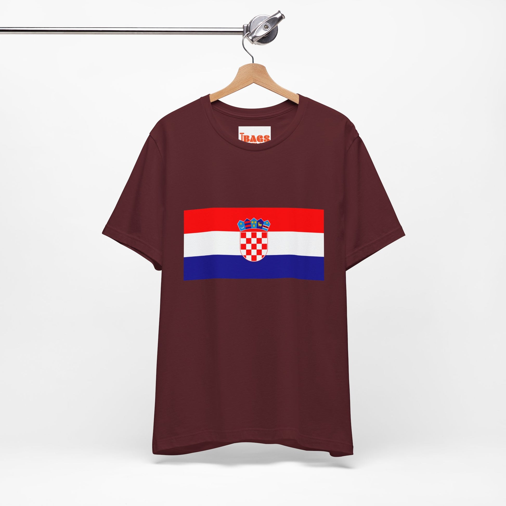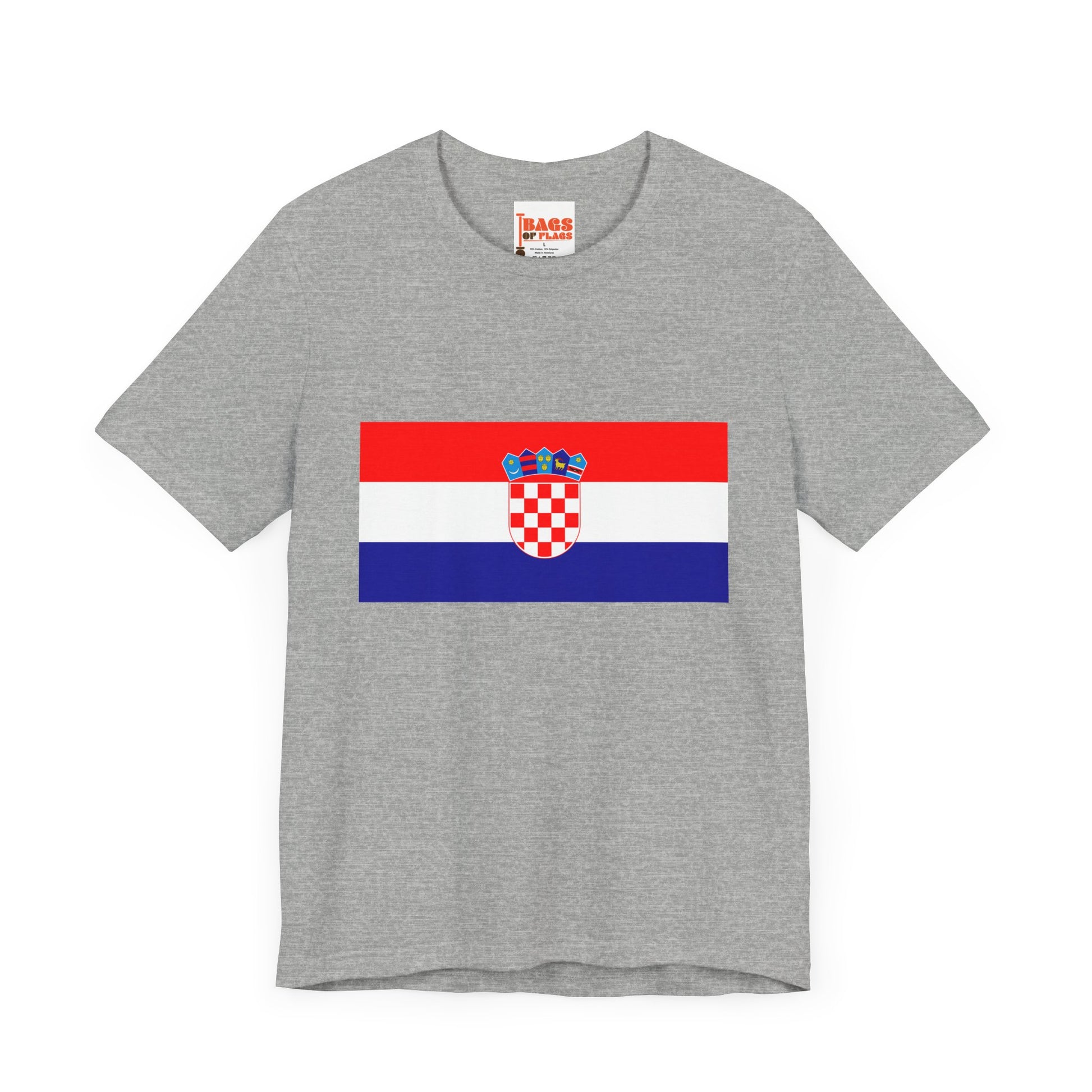 Show off your pride for the Adriatic gem with this bold and stylish Croatia Flag T-shirt. The design features the iconic red, white, and blue horizontal tricolor with Croatia’s unmistakable coat of arms front and center—five small shields above the traditional checkerboard pattern. Whether you're watching the Vatreni dominate the pitch, exploring your roots, or just repping a country known for its coastline and culture, this tee keeps your look fresh and meaningful.