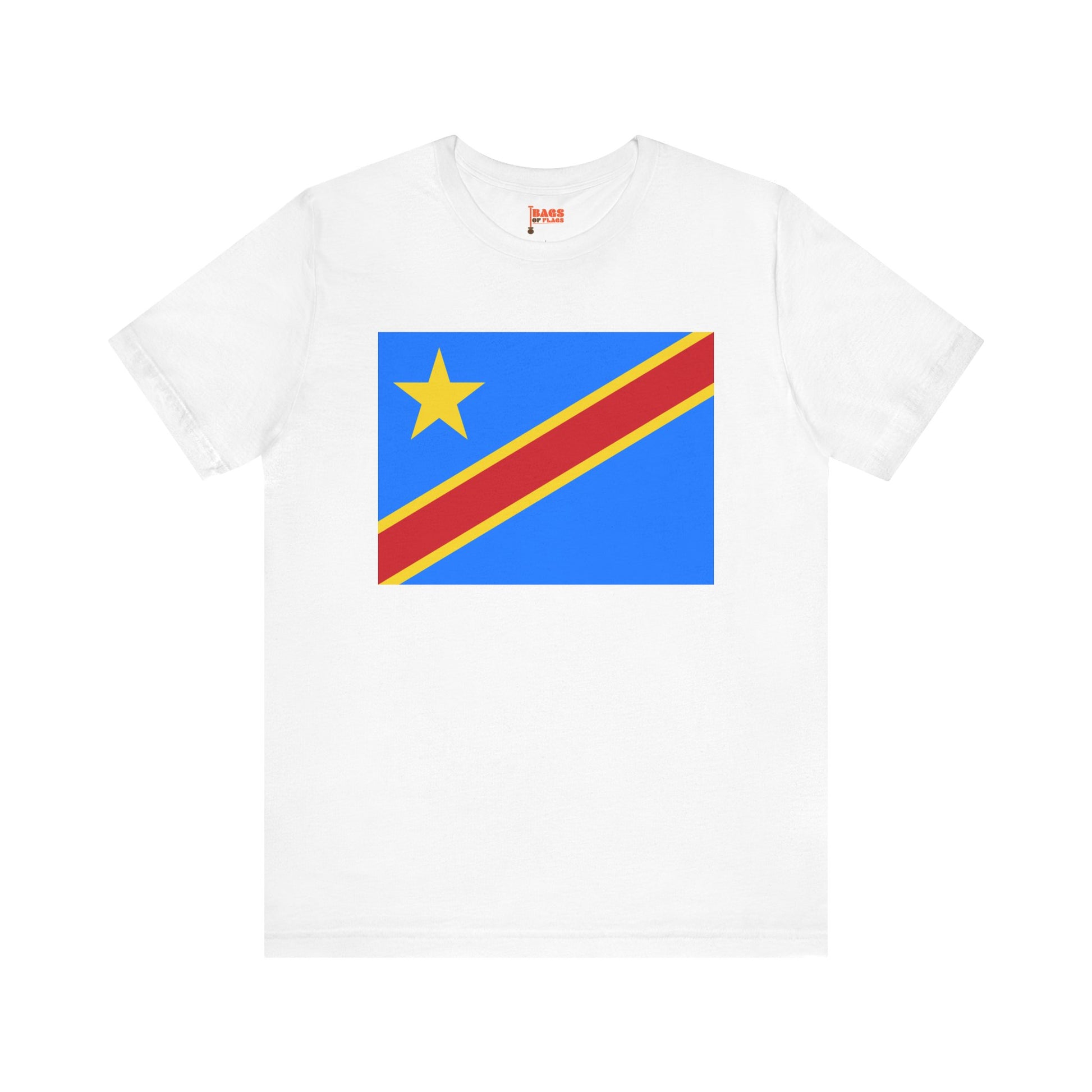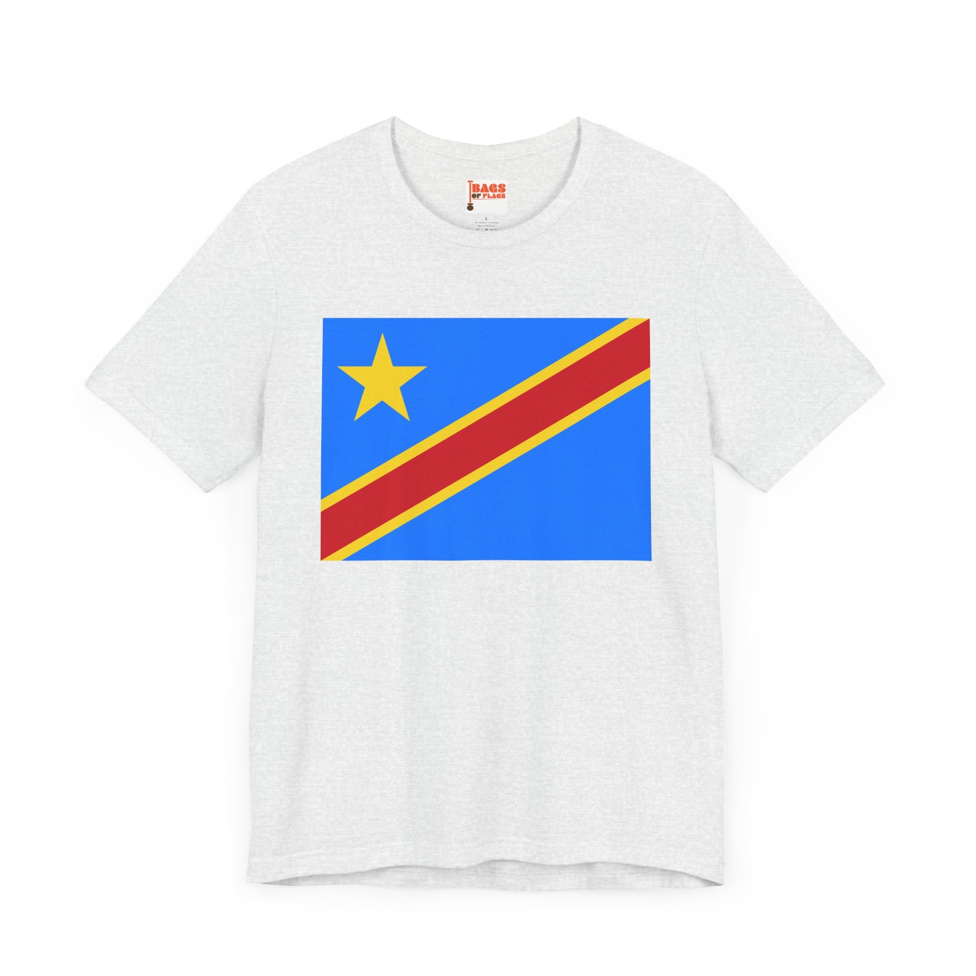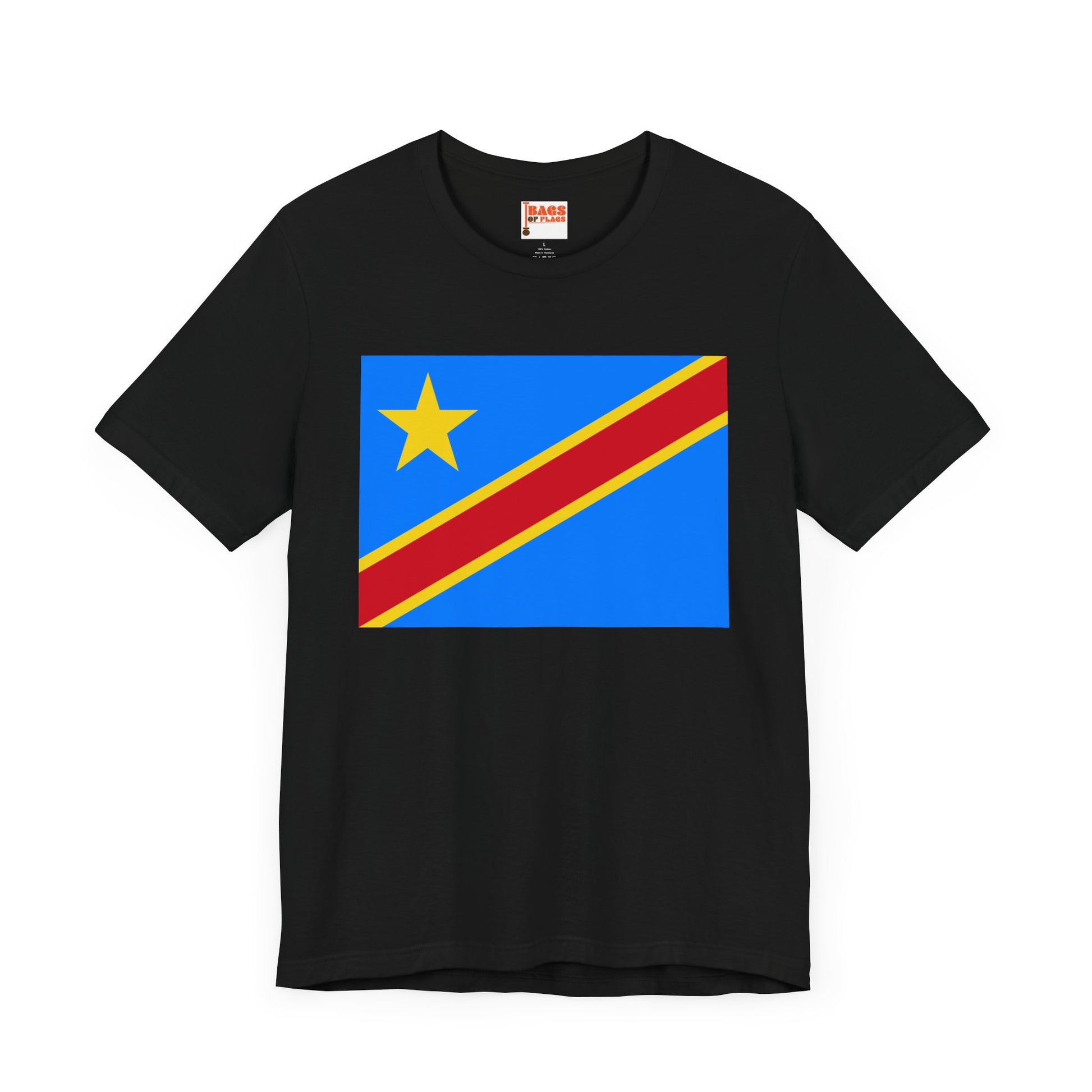 The Democratic Republic of Congo flag design on this t-shirt represents unity and hope. The bright yellow star shines as a symbol of a radiant future, while the red diagonal stripe signifies the blood of the people who fought for independence. The rich blue background stands for peace and the vast Congo River that sustains the nation.