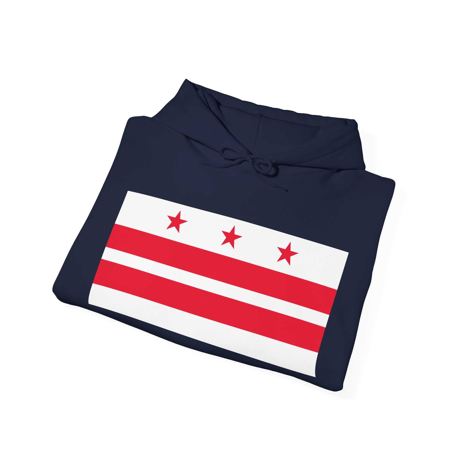 The District of Columbia flag features three red stars above two red bars on a white field, a design inspired by George Washington’s family coat of arms. This striking flag symbolizes the city’s rich history, political importance, and vibrant community spirit—making this hoodie a proud statement of your connection to D.C.