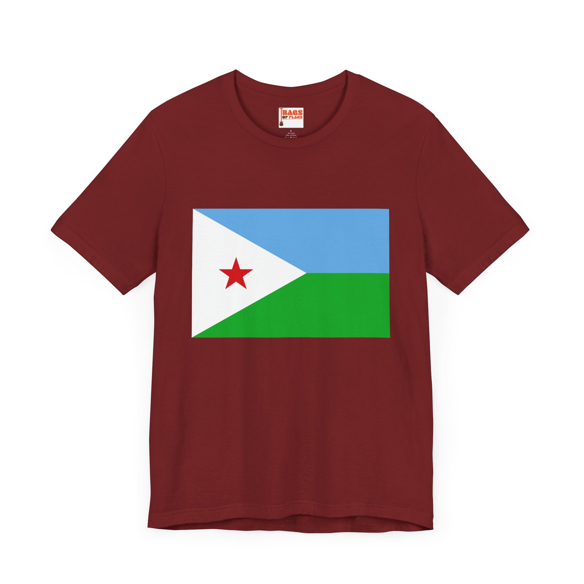 Show off your heritage or love for East Africa with this Djibouti Flag T-shirt, a soft, breathable, and effortlessly stylish piece that lets the flag speak for itself. The bold design features the iconic flag of Djibouti—a white triangle with a red star pointing toward unity and freedom, flanked by horizontal stripes of sky blue and green. Whether you're connected to Djibouti by roots, travel, or admiration, this tee brings culture and comfort together in one everyday essential.