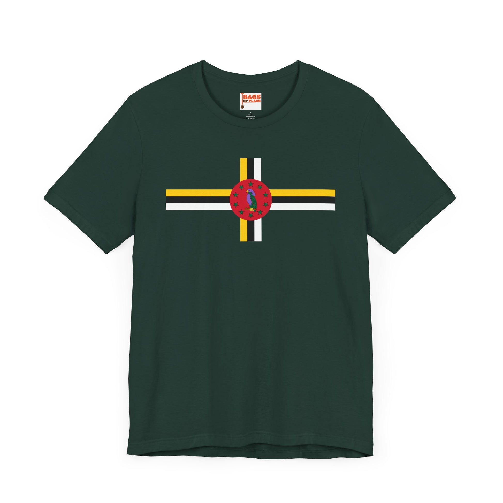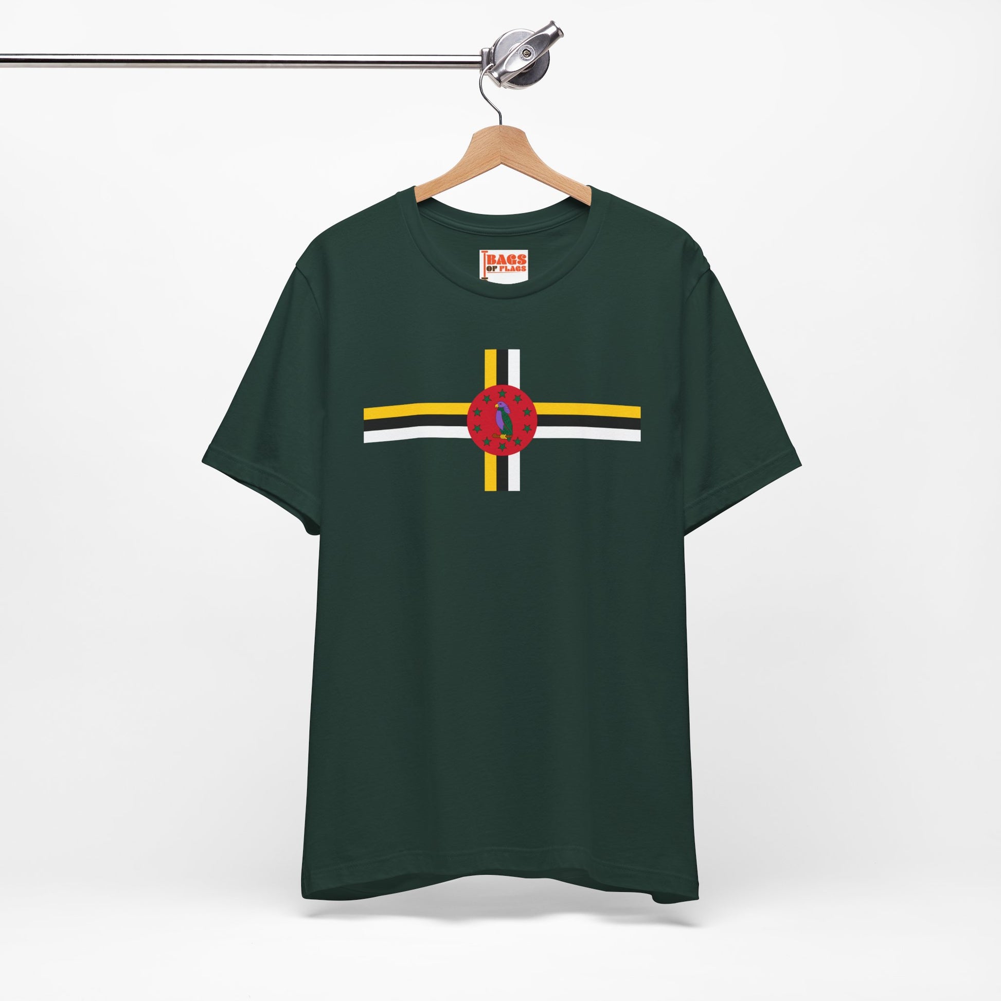 Dominica’s inspiration shines through this tee, reflecting its nickname “The Nature Island.” The design hints at the island’s iconic Sisserou parrot, vibrant rainforests, and the bold colors that symbolize harmony, courage, and natural beauty. Wearing this shirt is a nod to Dominica’s lush environment and the resilient spirit of its people.