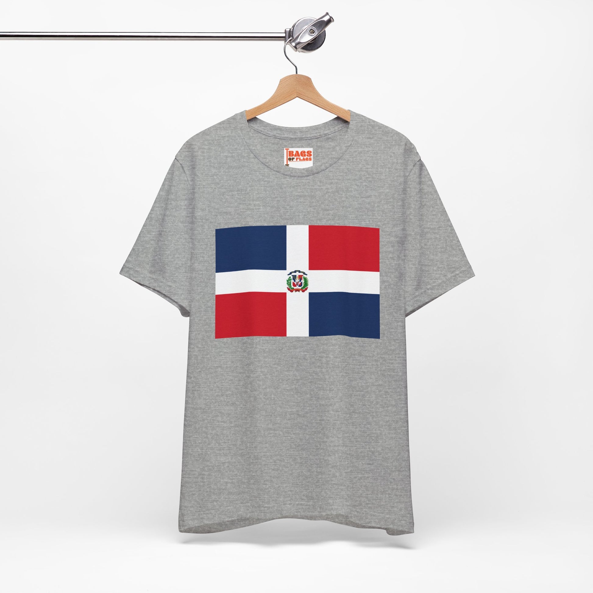Wear your culture loud and proud with the Dominican Republic Flag T-shirt. Featuring the bold and symbolic national flag, this tee is more than just clothing—it’s a connection to identity, pride, and history. The flag’s iconic cross, dividing the red, white, and blue fields, is centered with the Dominican coat of arms, making this design instantly recognizable to Dominicans and admirers of the Caribbean nation alike.