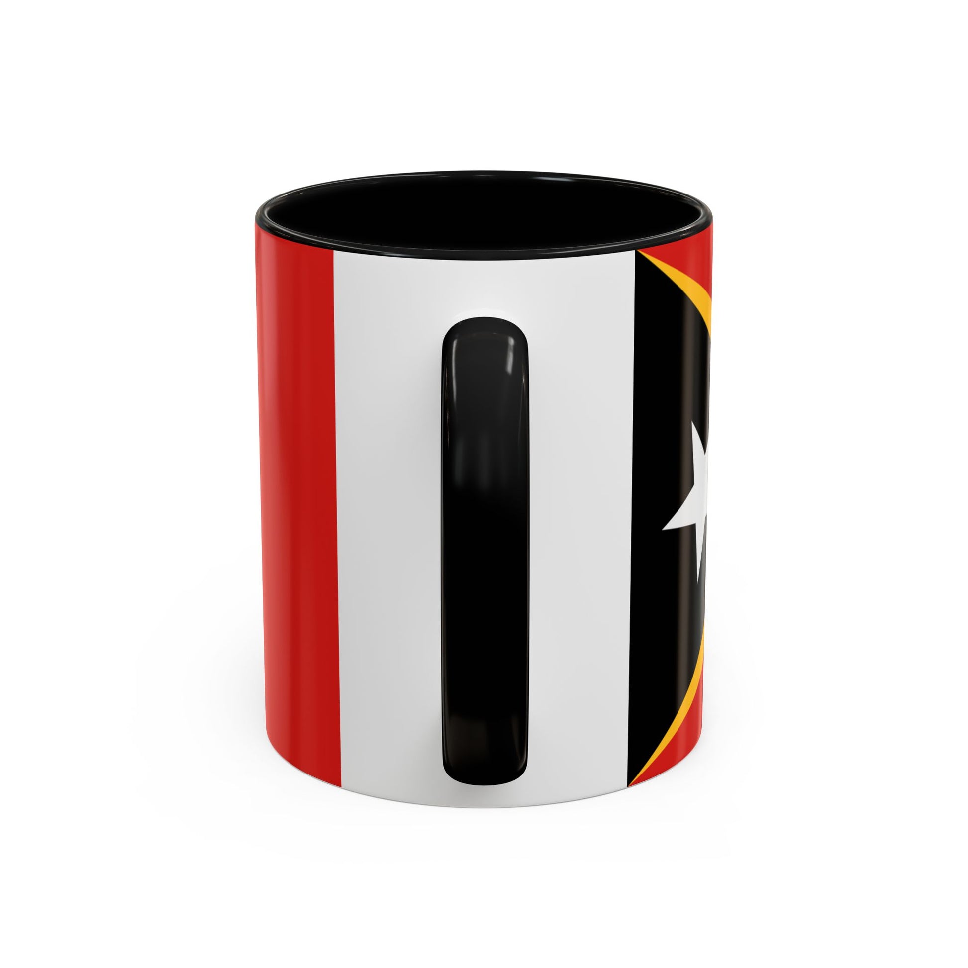 Enjoy your favorite beverage while celebrating the spirit of Southeast Asia with the East Timor Mug. This durable ceramic mug pairs everyday practicality with the bold colors of the flag of East Timor, bringing culture and heritage to your morning routine. Its glossy white exterior is enhanced by a colored interior and handle, making it both stylish and functional. The C-shaped handle provides a comfortable grip, ensuring each sip of coffee, tea, or hot chocolate is enjoyed with ease.