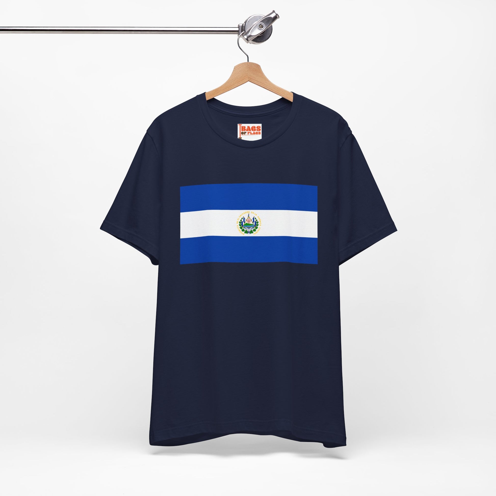 Wear your pride front and center with this El Salvador Flag on T-shirt—a bold, comfortable way to celebrate your roots or honor your connection to this beautiful Central American country. Featuring the iconic blue and white horizontal stripes and El Salvador’s national coat of arms in vibrant detail, this tee is more than just stylish—it’s symbolic. Whether you're repping your heritage at a festival, cheering at a game, or just going about your day, this shirt lets you do it with pride and ease.