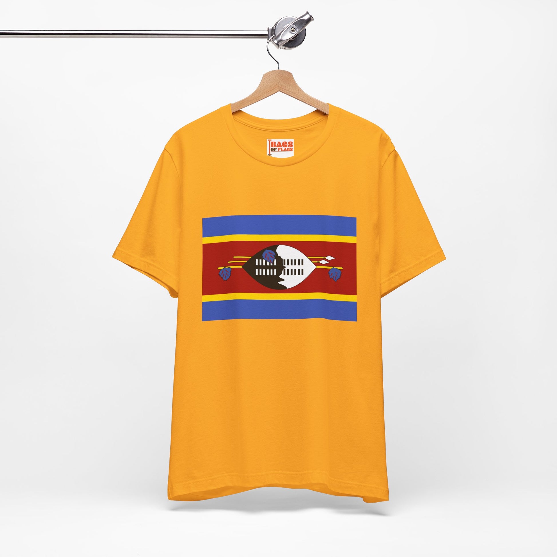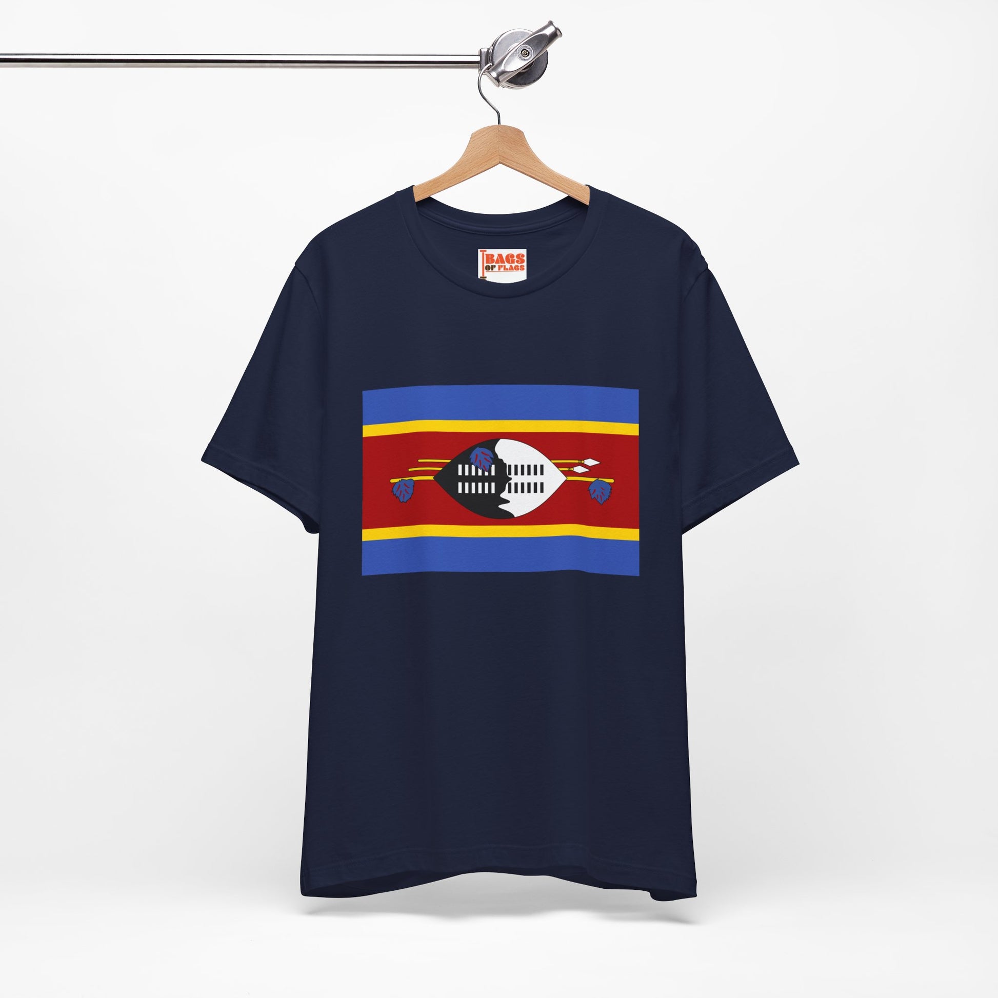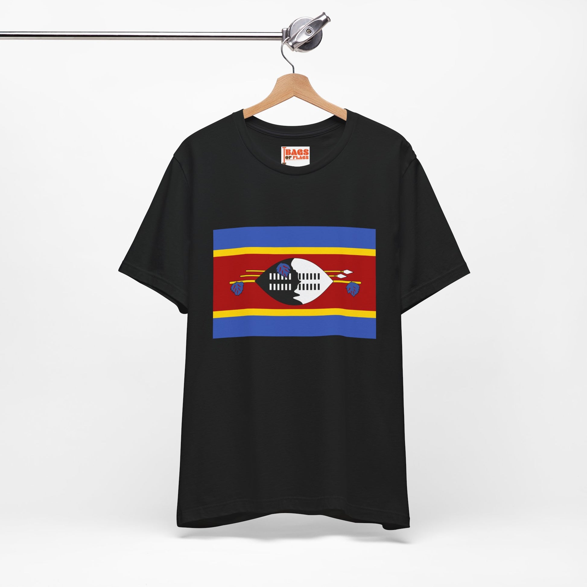 Carry the bold heritage of Eswatini wherever you go with this striking Eswatini Flag T-shirt. Featuring the vibrant red, blue, and yellow stripes with the central Nguni shield and spears, this unisex tee honors the strength, unity, and cultural pride of the Swazi people. Made for comfort and everyday versatility, it’s the perfect way to celebrate your connection to Eswatini—or to simply wear a flag with deep historical significance and eye-catching symbolism.