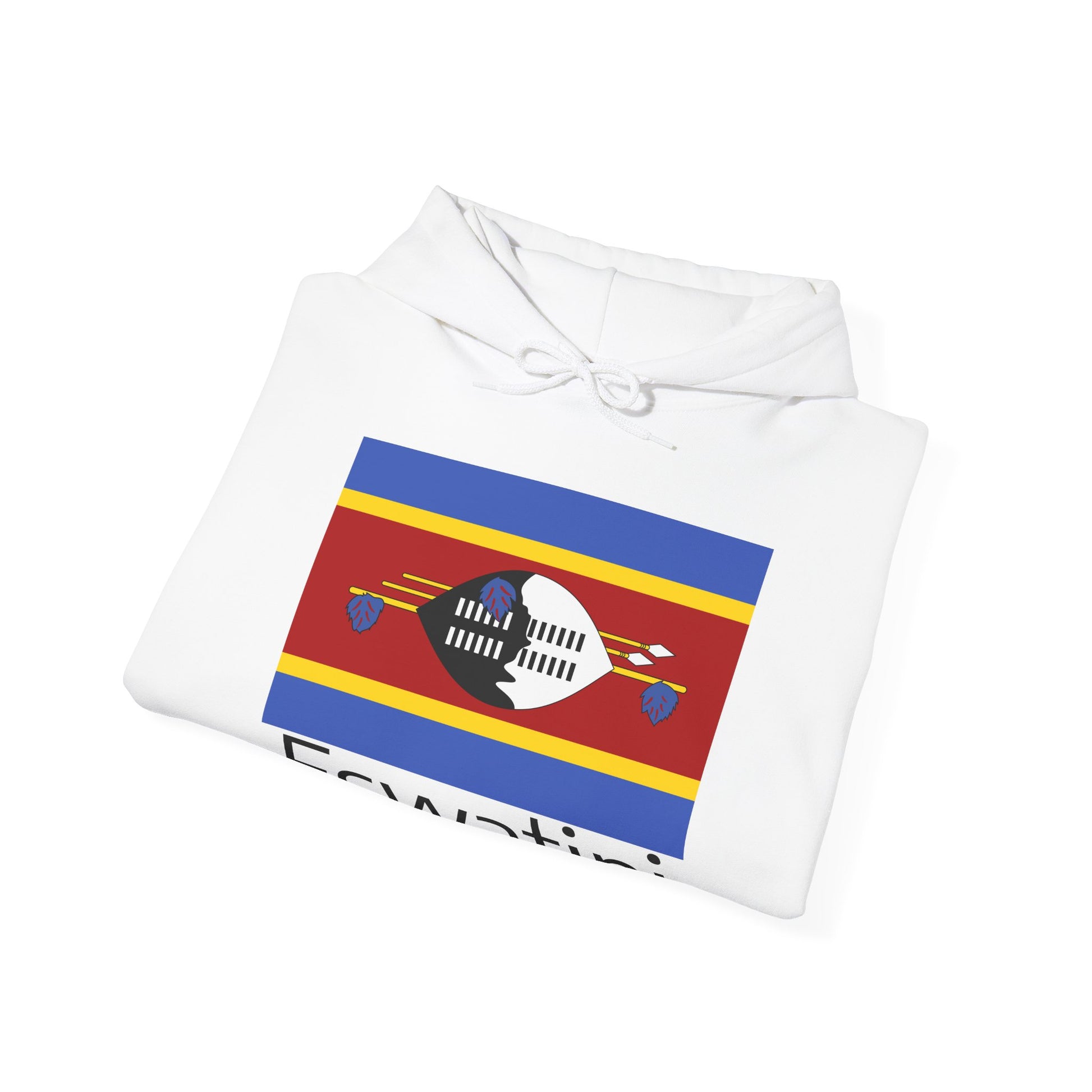 The Eswatini flag reflects the nation’s identity and traditions. Red represents past battles, blue stands for peace and stability, yellow signifies natural resources, and the central black-and-white Nguni shield with spears symbolizes protection and cultural pride. Wearing this hoodie allows you to celebrate Eswatini’s heritage and history wherever you go.