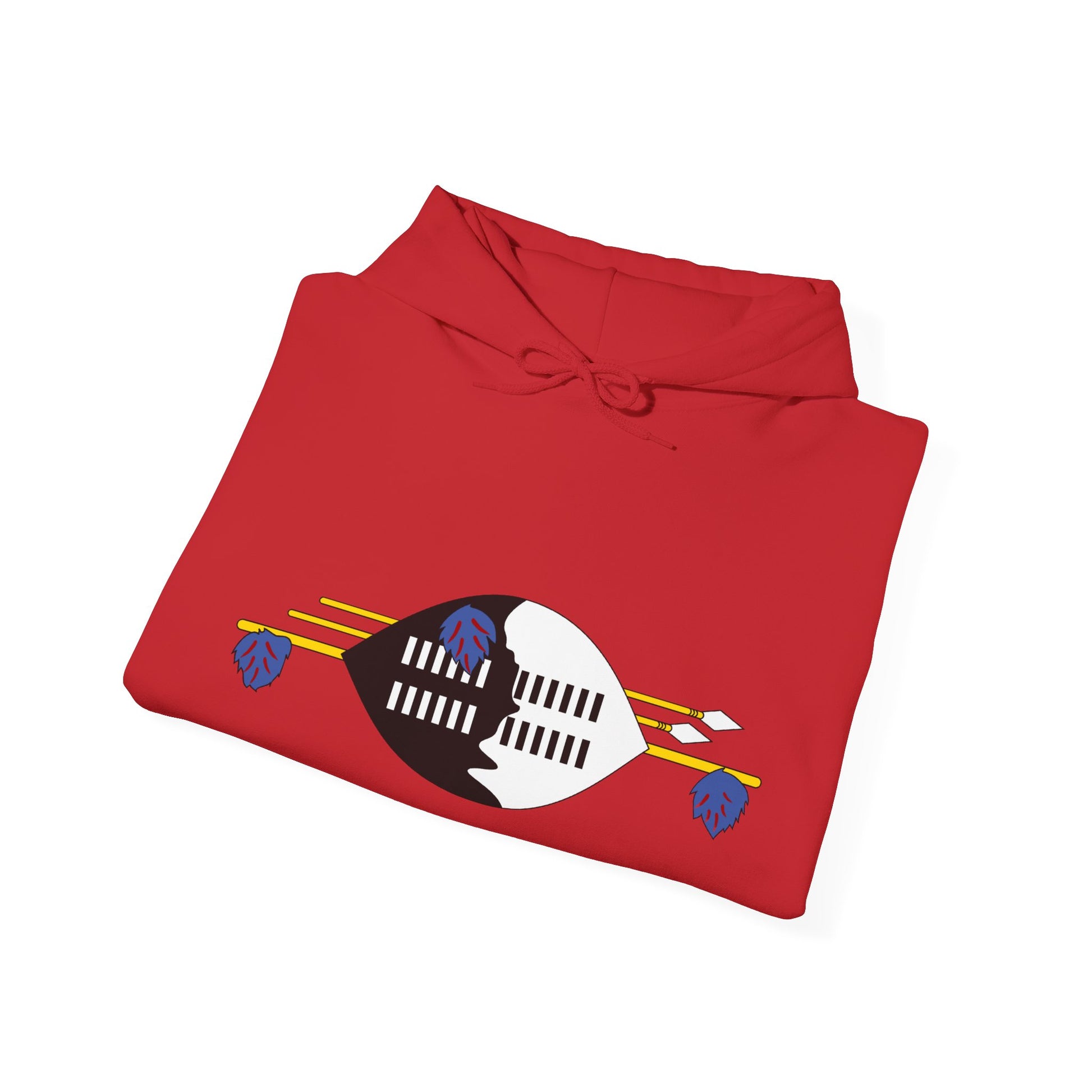 Celebrate your heritage with these Eswatini Shield Hoodies. Featuring the iconic black-and-white Nguni shield and traditional spears from Eswatini’s national emblem, these hoodies combine cultural pride with everyday comfort. Made from a soft cotton-poly blend, they provide warmth, durability, and a classic fit—perfect for casual wear, outdoor adventures, or cultural events. The spacious kangaroo pocket and double-lined hood add practical comfort while showcasing the striking shield design.