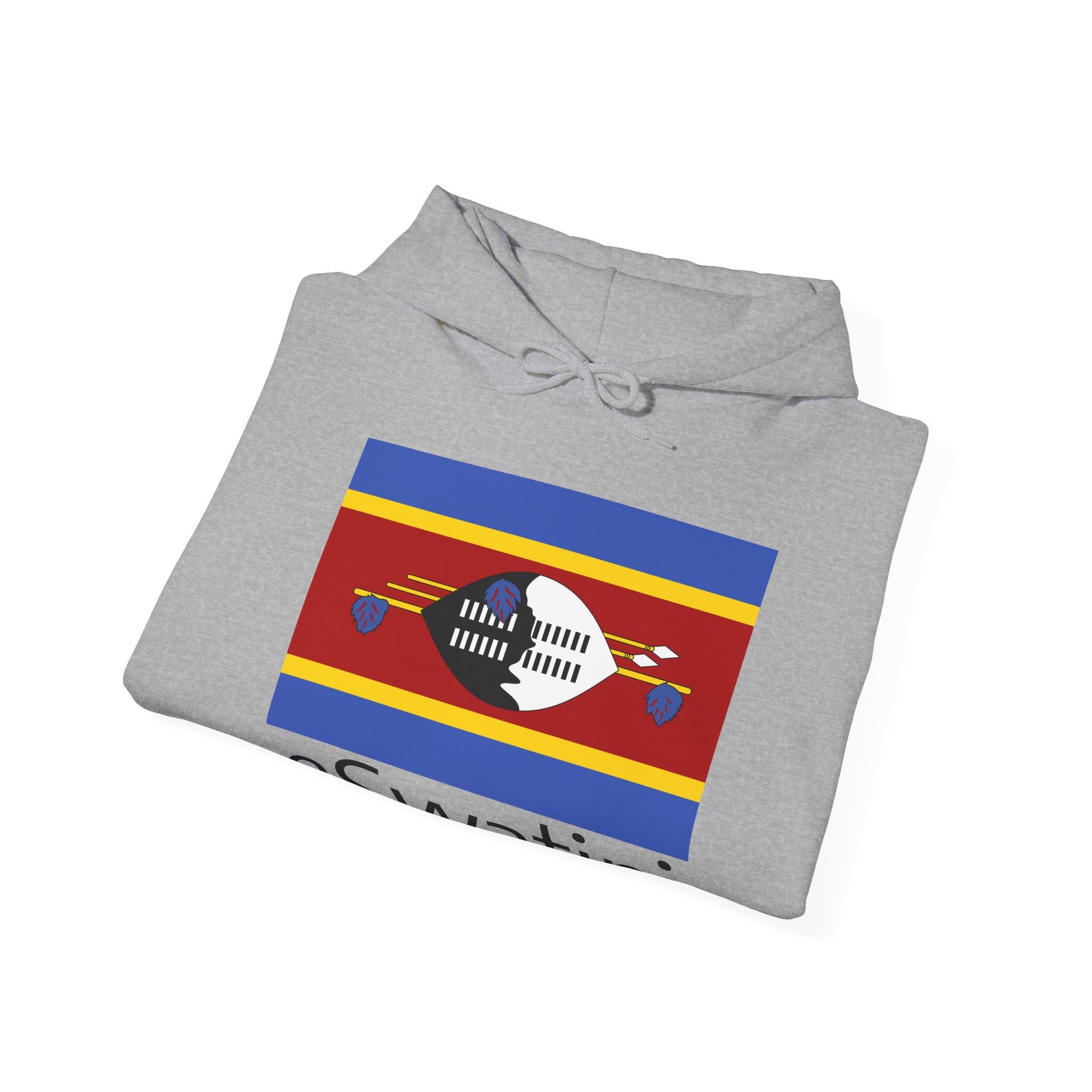 The eSwatini flag represents the country’s heritage and traditions. Red symbolizes past battles, blue stands for peace and stability, yellow signifies natural resources, and the central black-and-white shield and spears reflect protection and cultural pride. Wearing this hoodie allows you to carry a meaningful symbol of eSwatini wherever you go.
