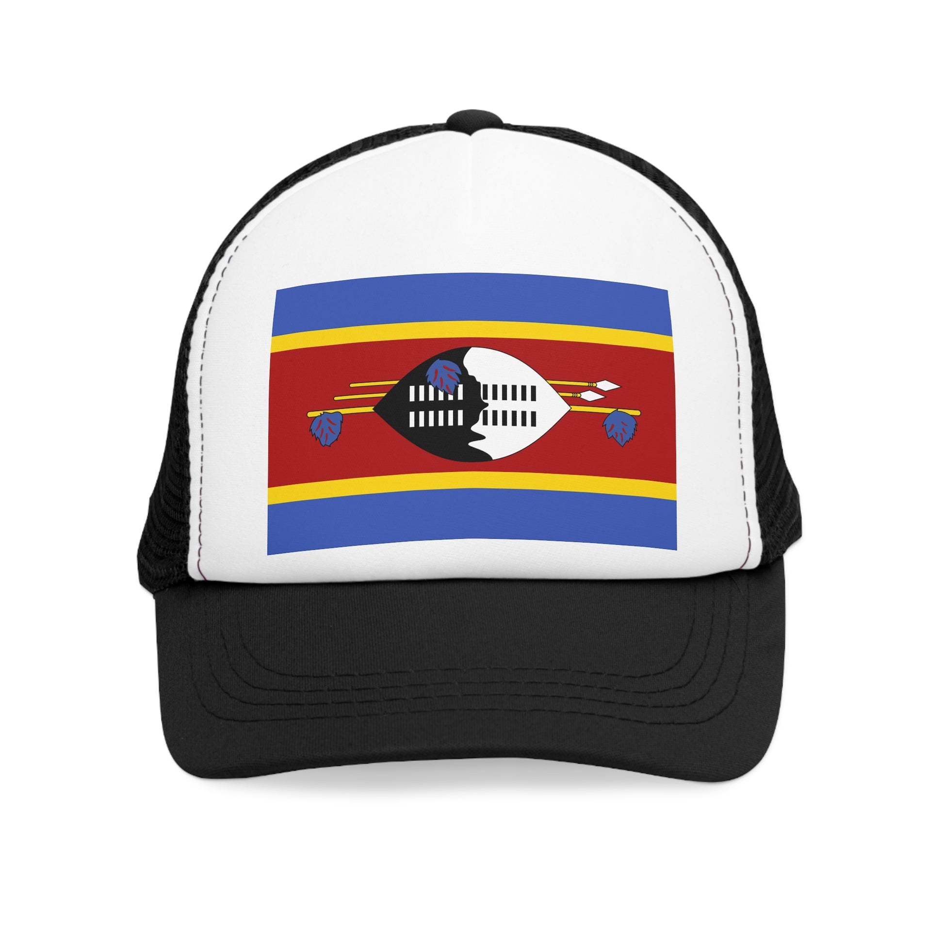 Celebrate the vibrant culture and heritage of Southern Africa with the Eswatini Trucker Cap, a stylish accessory designed for comfort and everyday wear. Made from 100% polyester, this lightweight cap features a breathable mesh back that keeps you cool on sunny days. The black variant offers a sleek, versatile look that pairs effortlessly with casual or travel outfits, while the adjustable snap closure ensures a comfortable fit for most head sizes.