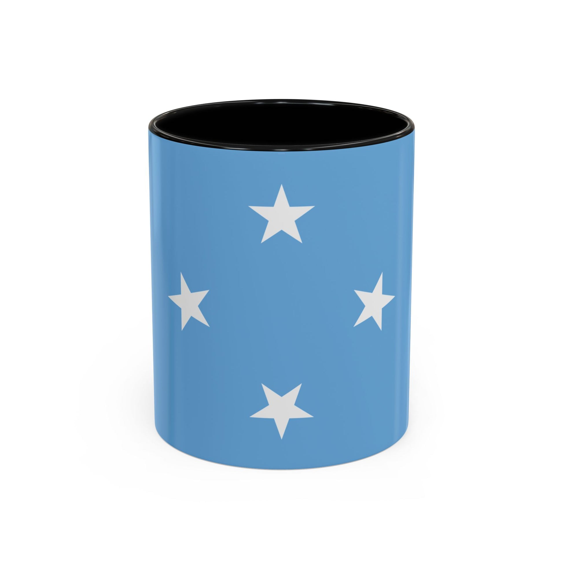 The flag of the Federated States of Micronesia has a light blue field with four white five-pointed stars arranged in a diamond pattern. The blue represents the Pacific Ocean, while each star symbolizes one of the four states: Yap, Chuuk, Pohnpei, and Kosrae. The Federated States of Micronesia Mug brings these meaningful national symbols into your daily coffee or tea ritual.