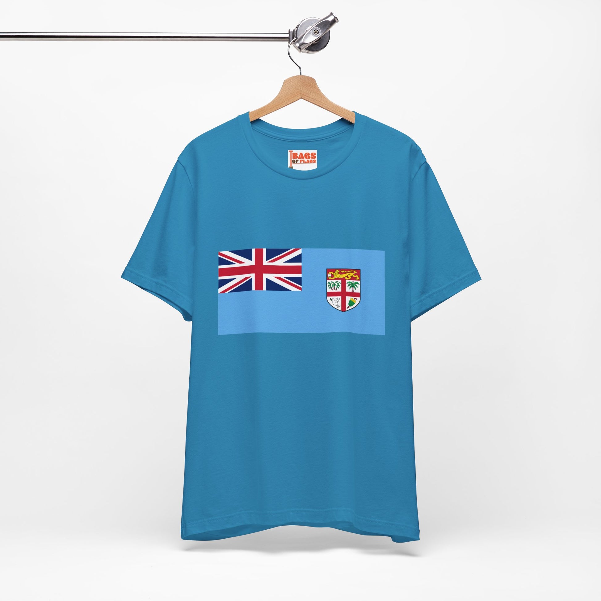 Proudly display the spirit of the South Pacific with this Fiji Flag T-shirt, featuring the distinctive coat of arms set against the Union Jack and light blue field. Whether you're from Fiji, have island heritage, or simply admire the nation's rich culture and coastal charm, this tee lets you wear that pride boldly. Made from soft, breathable cotton, it’s built for comfort and designed to stand out with its vibrant, meaningful symbolism.