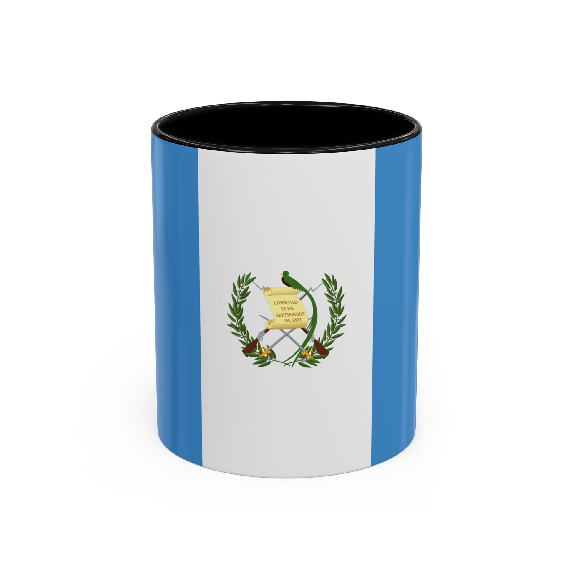 The flag of Guatemala consists of three vertical stripes: light blue, white, and light blue, with the national coat of arms centered on the white stripe. The blue represents the Pacific and Atlantic Oceans, while white symbolizes peace and purity. The coat of arms includes a quetzal bird for liberty, a parchment scroll, crossed rifles, and swords, symbolizing the country’s readiness to defend its freedom and sovereignty. The Guatemala Mug brings these meaningful symbols to your daily coffee or tea ritual.
