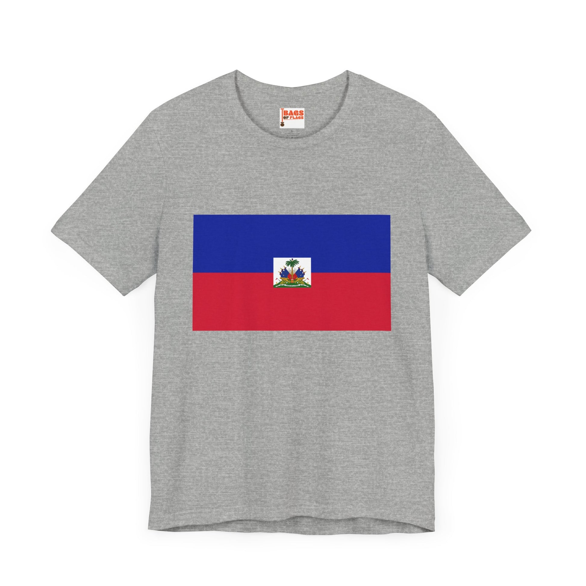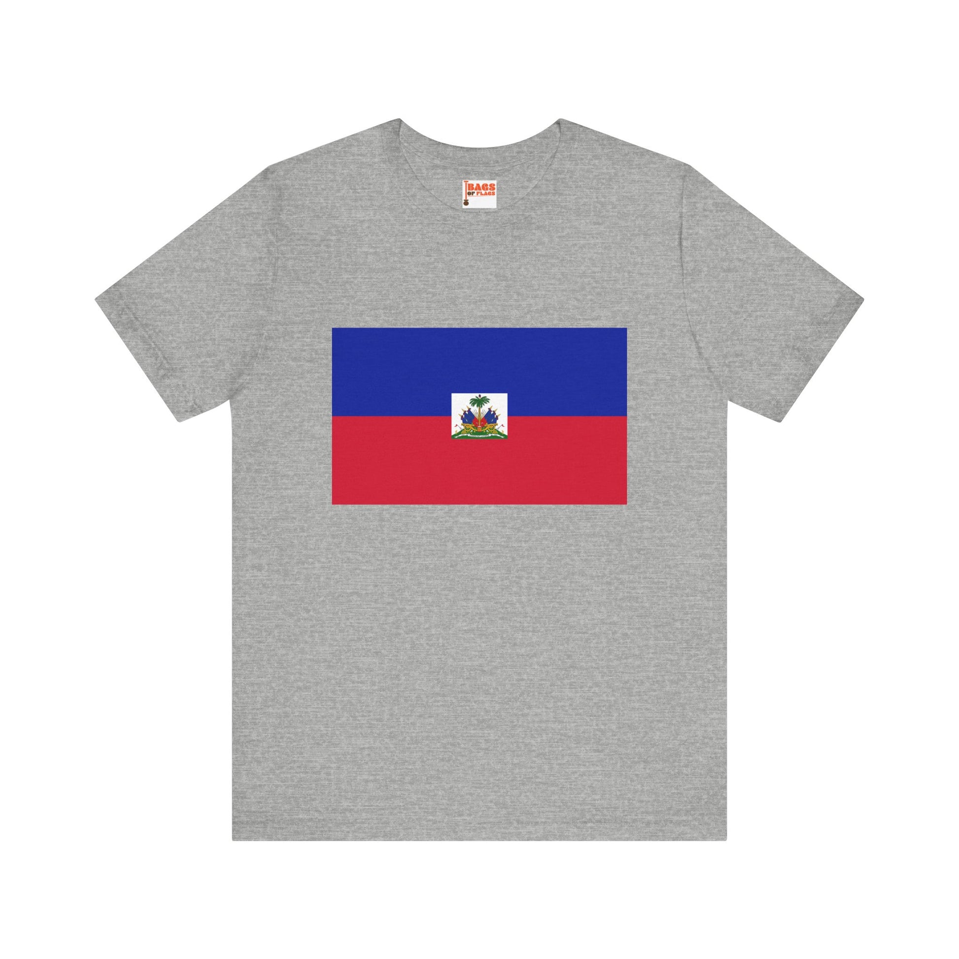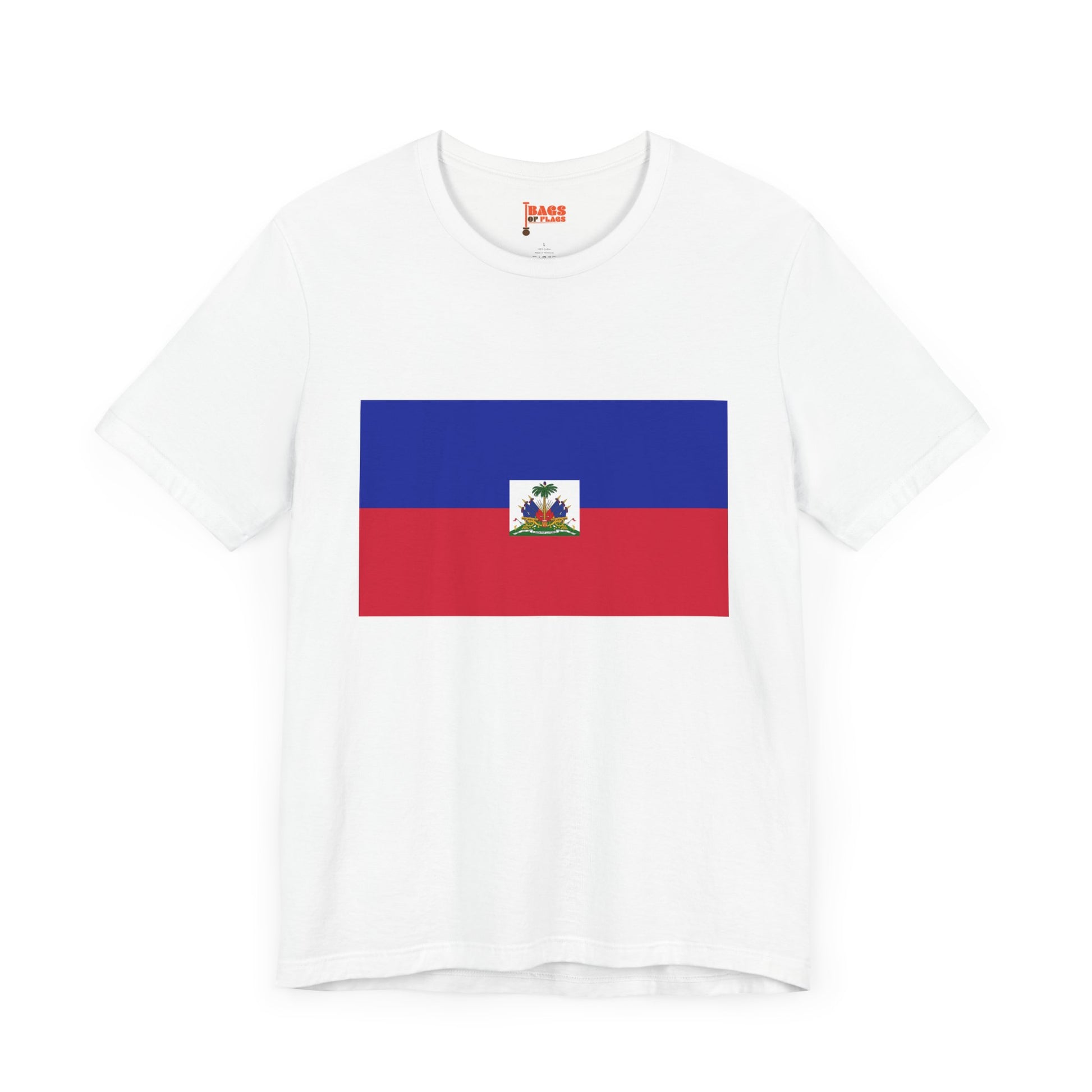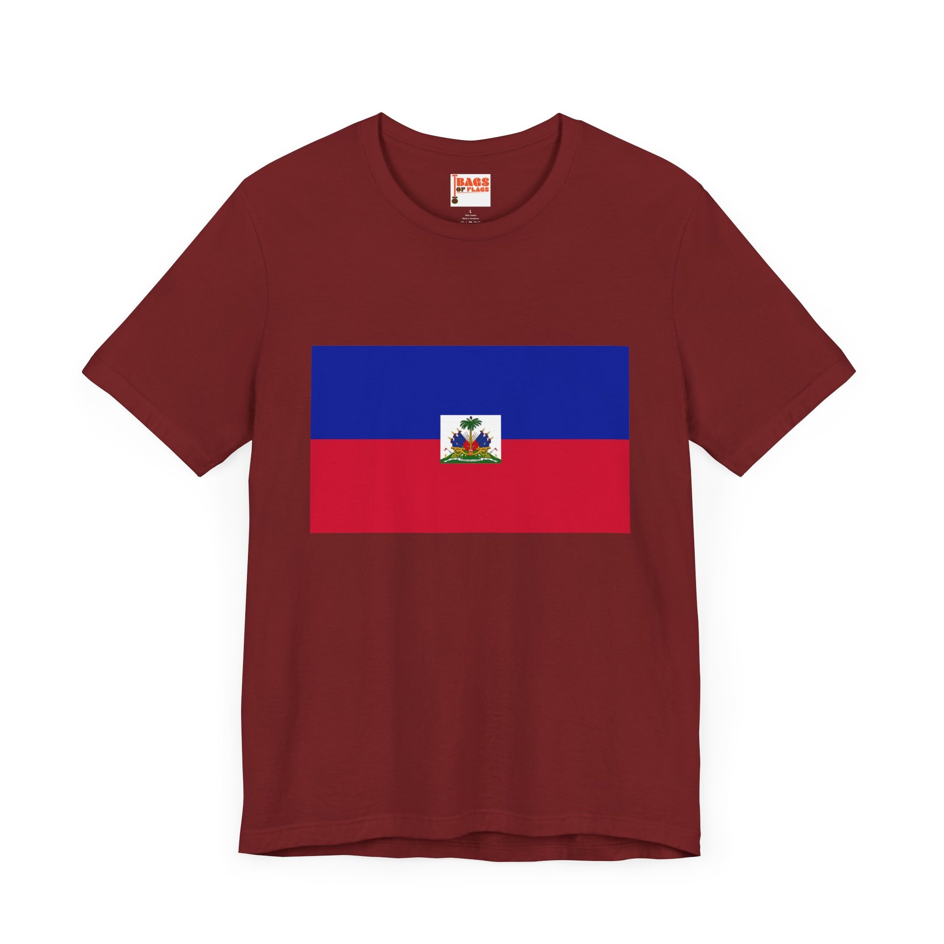 Showcase your pride in Haiti with this striking Haiti Flag T-shirt, featuring the bold red and blue horizontal stripes and the national coat of arms centered on the chest. This design honors the spirit of liberty, resilience, and unity that defines the Haitian people. Whether you're attending cultural events or simply want to represent Haiti in everyday life, this shirt lets your heritage shine.