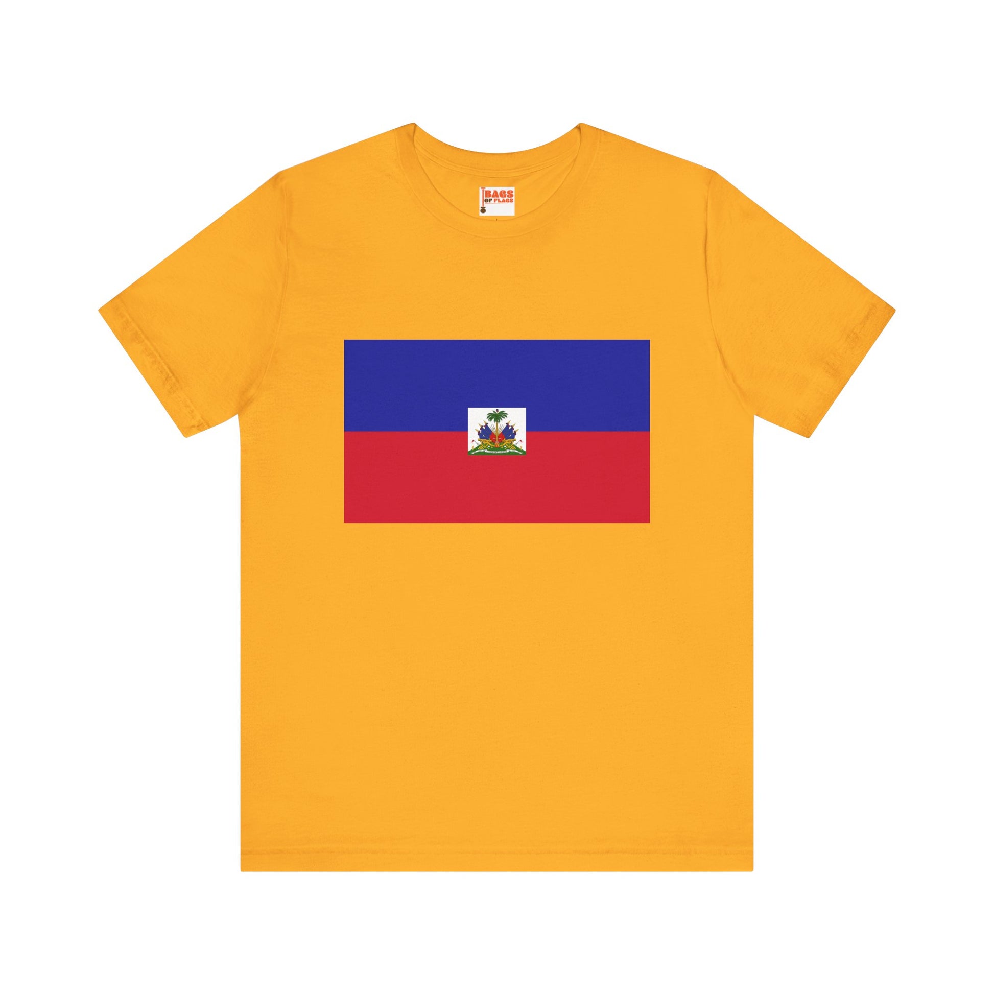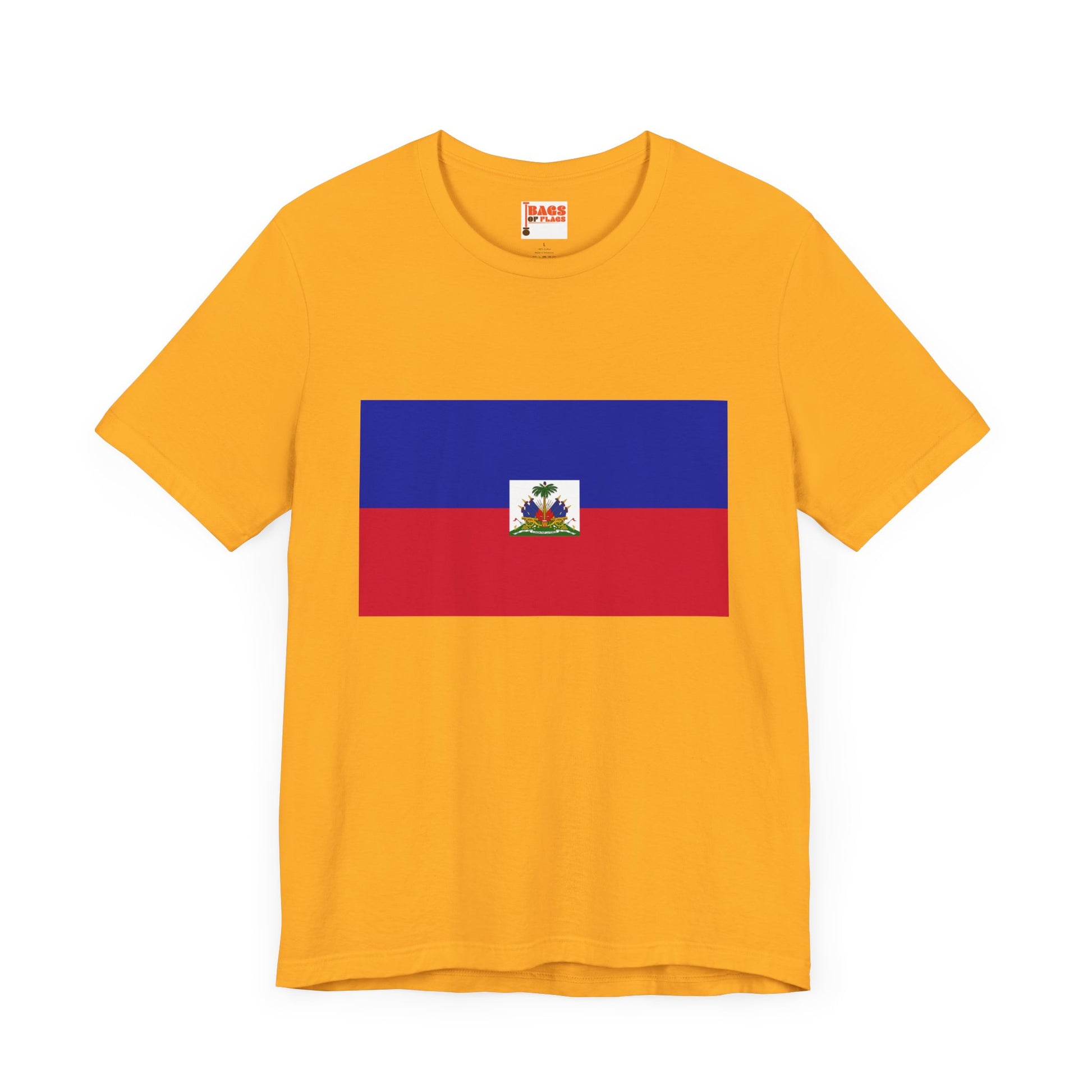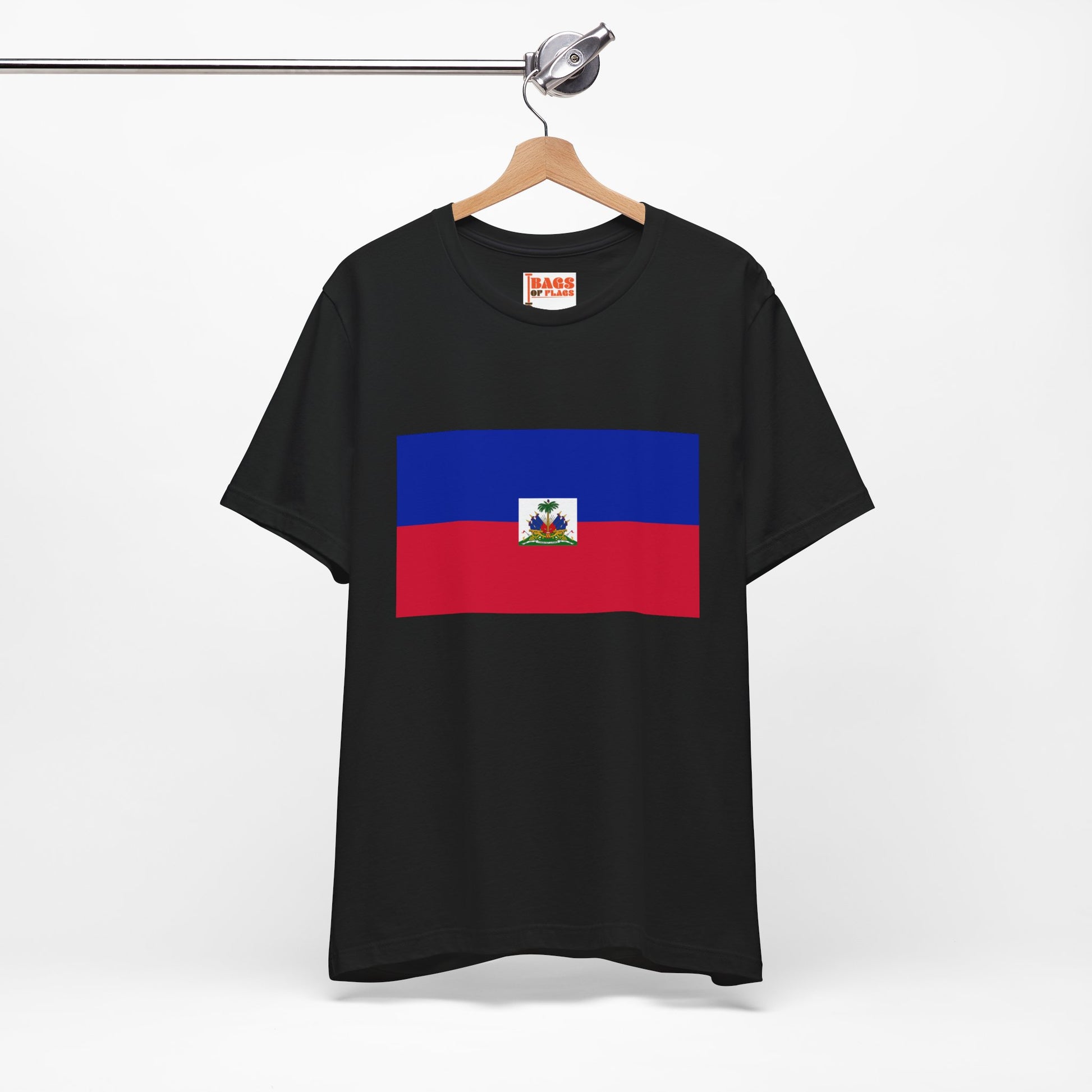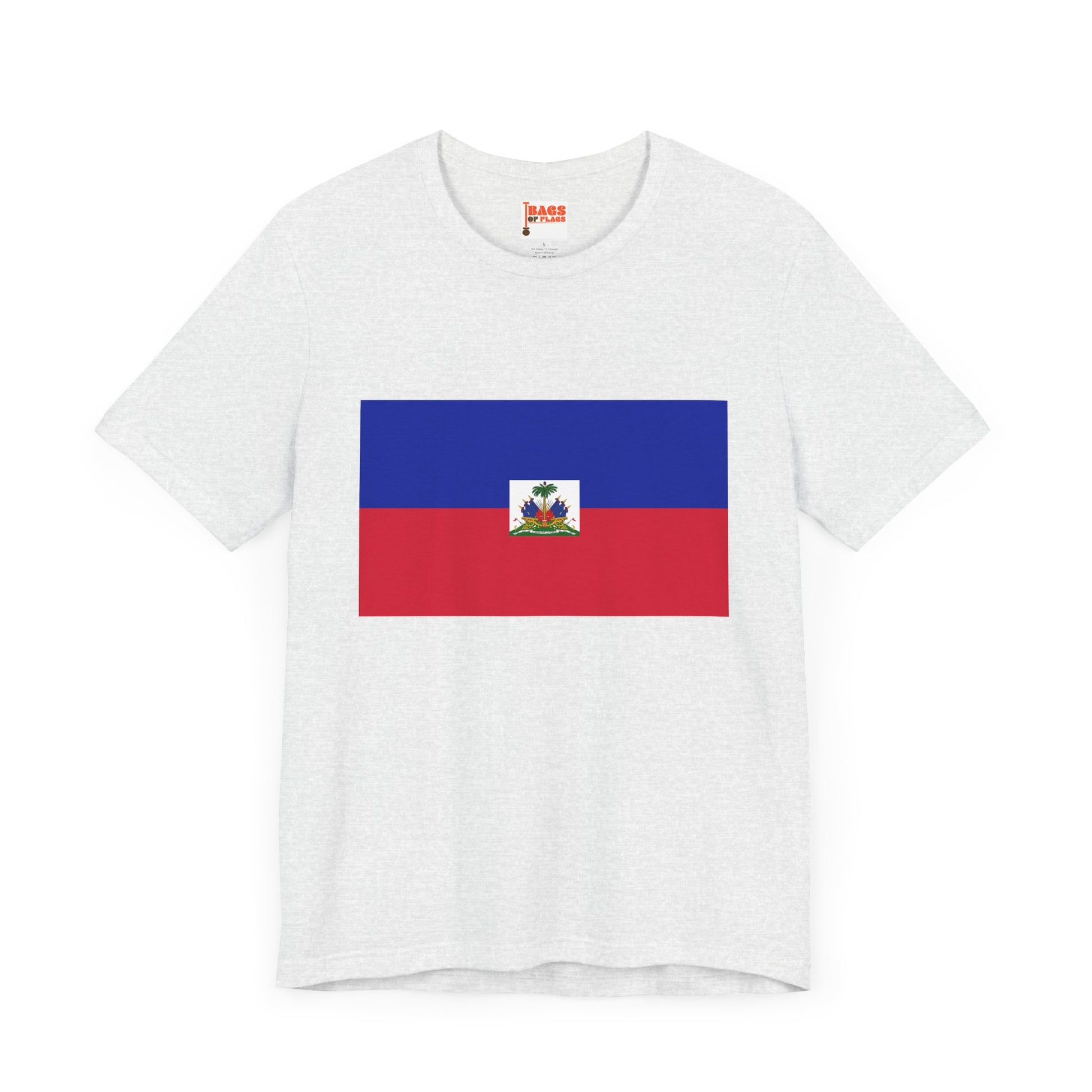 Showcase your pride in Haiti with this striking Haiti Flag T-shirt, featuring the bold red and blue horizontal stripes and the national coat of arms centered on the chest. This design honors the spirit of liberty, resilience, and unity that defines the Haitian people. Whether you're attending cultural events or simply want to represent Haiti in everyday life, this shirt lets your heritage shine.