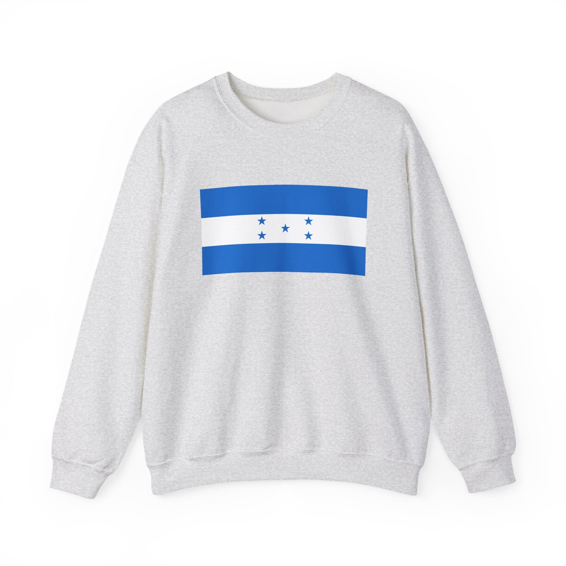 The Honduras Flag Sweatshirt is inspired by the national flag of Honduras. The blue stripes symbolize the Pacific Ocean and Caribbean Sea that frame the nation, while the white stripe represents peace and prosperity. The five blue stars in the center signify the hope for unity among the five countries of Central America. Wearing this sweatshirt is a meaningful way to honor Honduras’ history, culture, and national pride.
