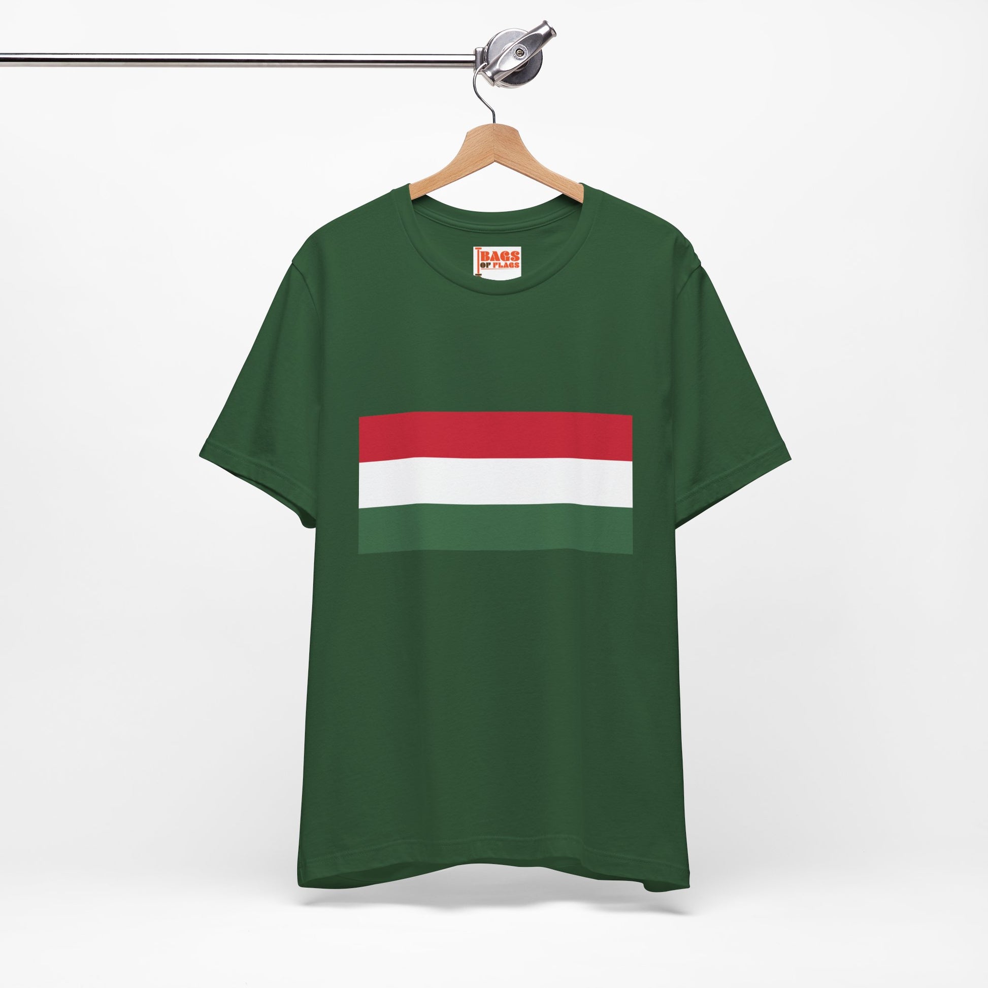 Show off your love for Hungary with this vibrant Hungary Flag T-shirt. Featuring the iconic red, white, and green stripes of the Hungarian flag, this shirt is a perfect way to celebrate heritage, culture, or just add a splash of color to your wardrobe. Crafted from soft, breathable cotton, it offers a comfortable fit whether you're out at a festival, cheering on your favorite team, or simply hanging out with friends.